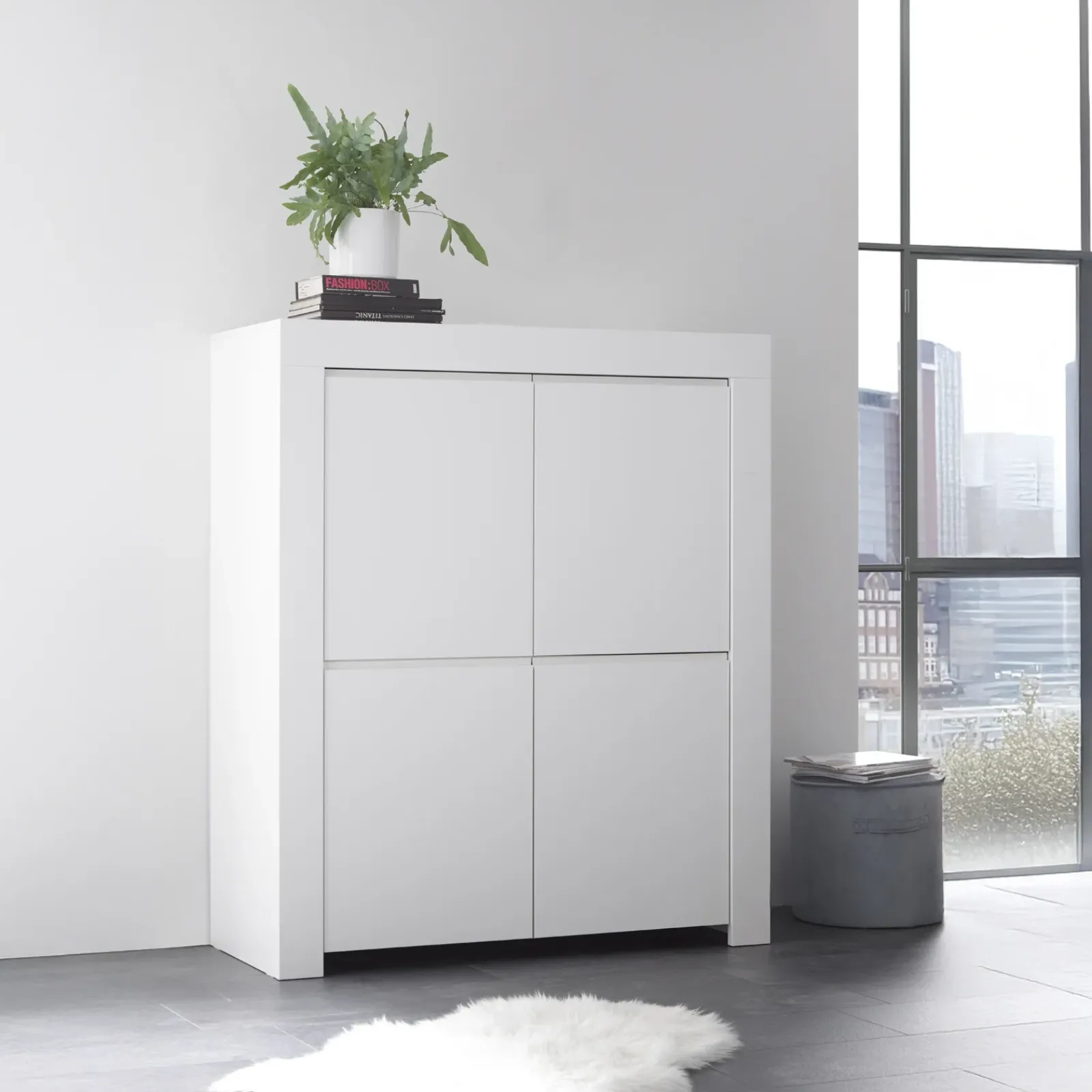 Credenza alta 110x140h cm 4 ante soggiorno moderna bianco opaco Bruma