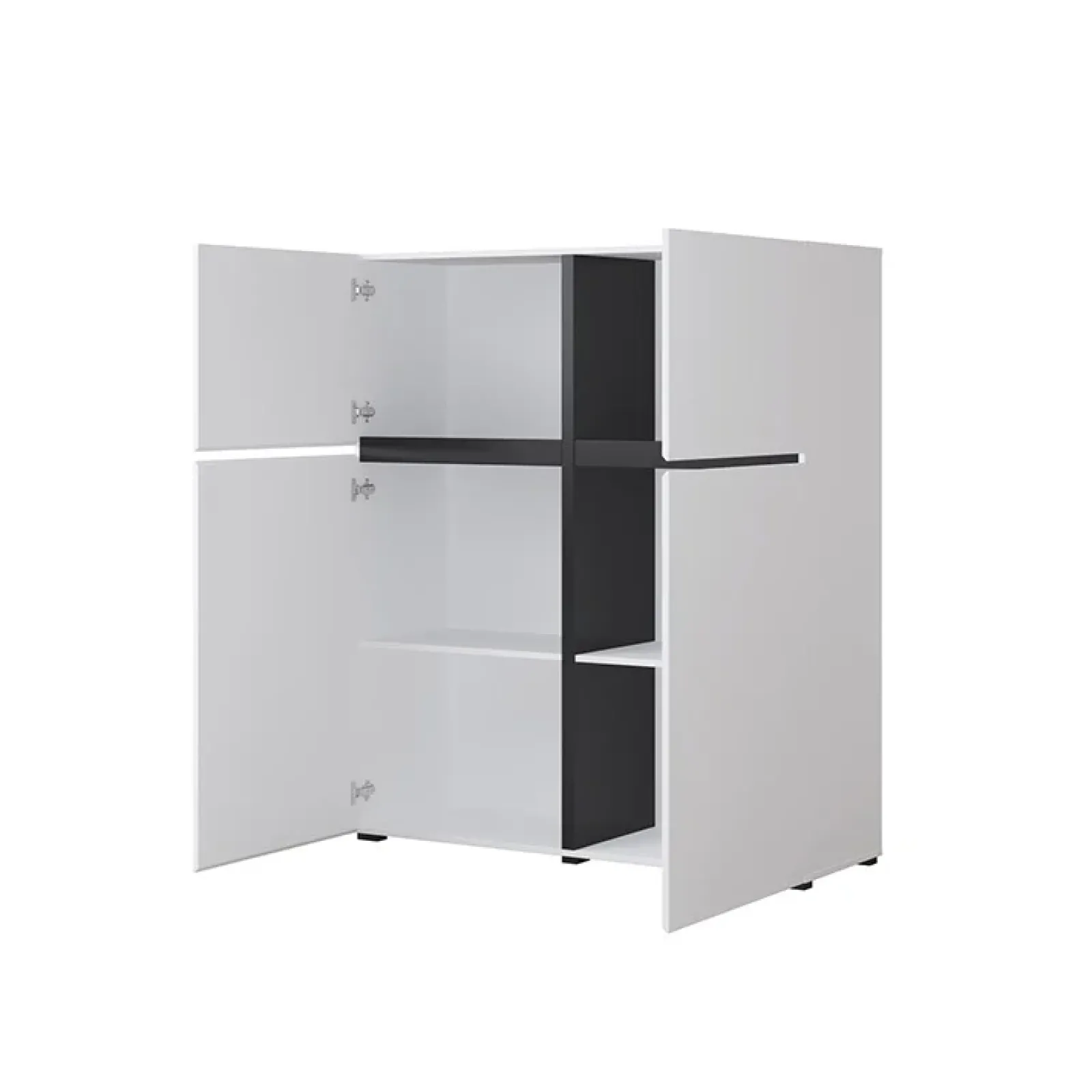 Garnero Arredamenti Credenza Alta|Credenze Moderne-Credenza alta 120x140h cm 4 ante moderna nero Lolla Bianco Opaco