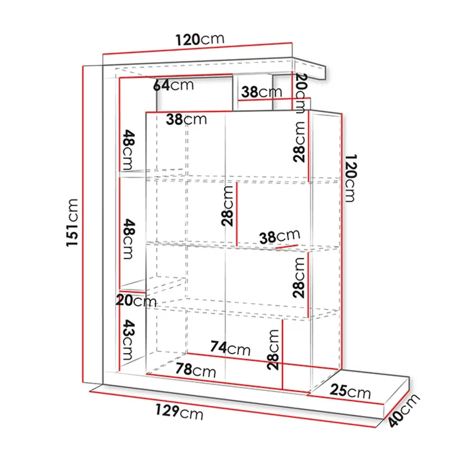 - dimensioni: L.129 x H.151 x P.40 cm