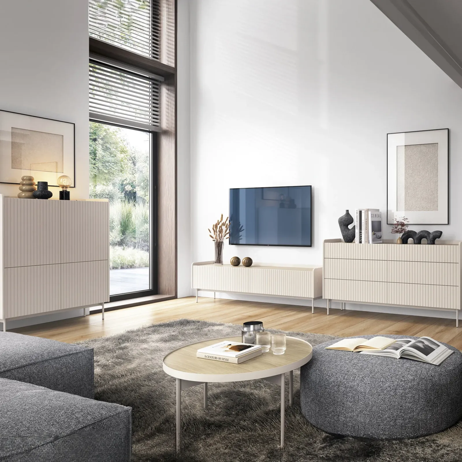 È davvero possibile unire praticità e bellezza per trasformare il tuo spazio in un ambiente accogliente e raffinato? Con la credenza alta Fioca, questo sogno diventa realtà! Caratterizzata da una raffinata finitura beige, la credenza alta Fioca si trasforma in un vero e proprio elemento decorativo, capace di adattarsi a qualsiasi ambiente della casa. La lavorazione cannettata dei frontali, in linea con le ultime tendenze dell’interior design, conferisce a questo pezzo un tocco di modernità e sofisticatezza, rendendola ideale per chi cerca stile e funzionalità! Con le sue quattro ante, la credenza offre otto vani interni che ti permettono di riporre con facilità servizi di piatti, tovaglie e oggetti vari. I vani superiori sono ideali per contenere articoli di uso quotidiano, mentre quelli inferiori offrono maggiore capienza per oggetti più ingombranti. Appartenente alla categoria dei mobili moderni, questa credenza si distingue per l’assenza di maniglie, grazie al pratico sistema push to open che ne facilita l’apertura. Le gambe in metallo beige, alte 18 cm, aggiungono un tocco di eleganza, facendo risaltare la credenza nel tuo soggiorno con il minimo sforzo!