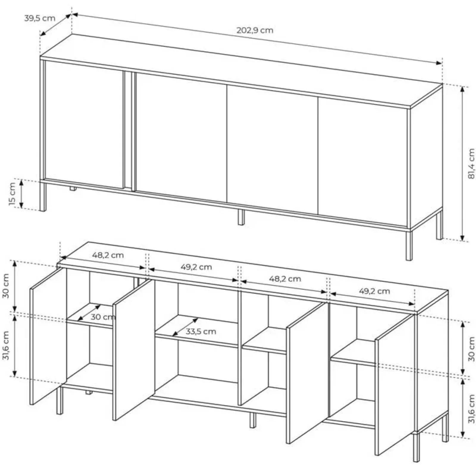 | Dimensioni | L.202,9 x H.81,4 x P.39,5 cm |