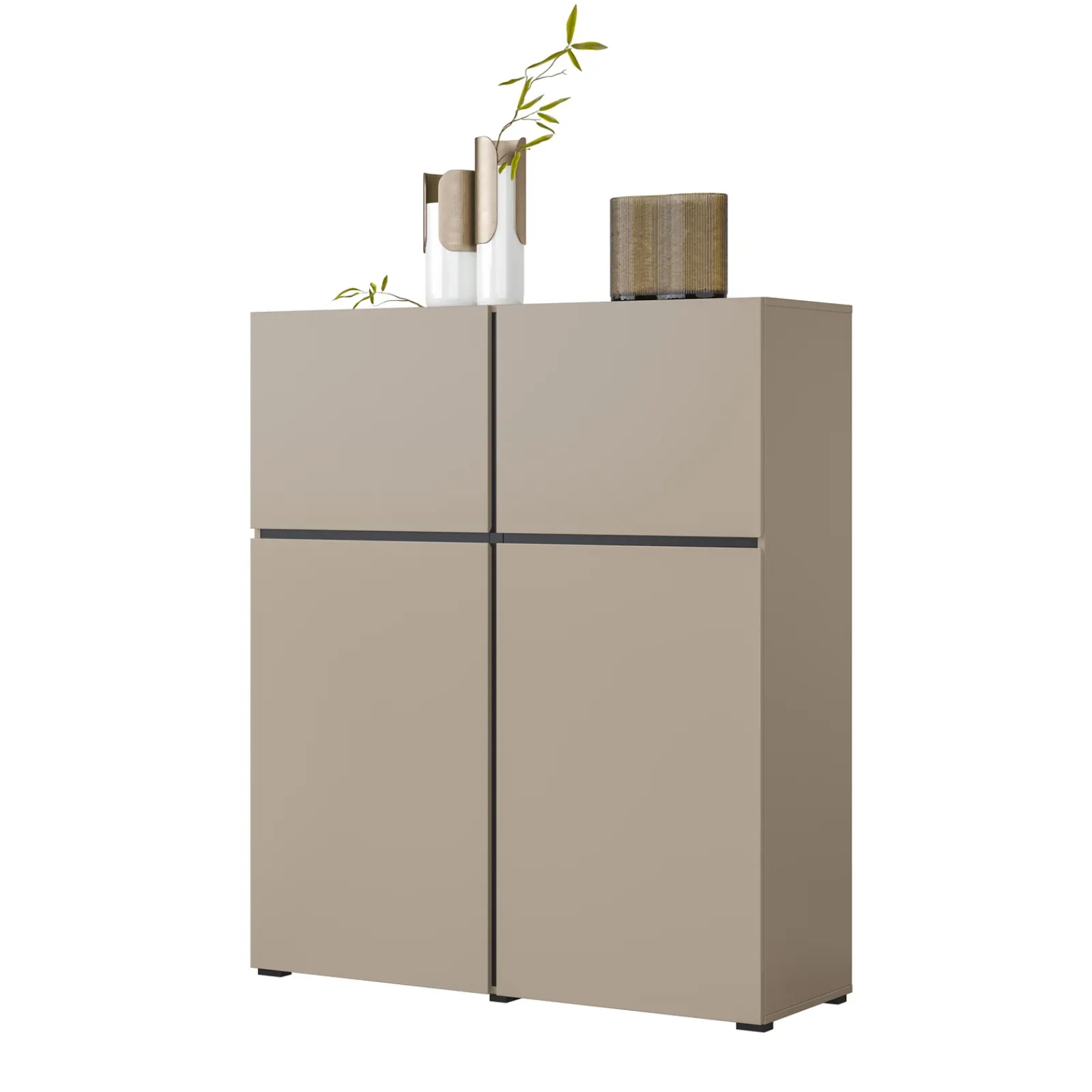 Garnero Arredamenti Credenze Moderne|Credenza Alta-Credenza alta 120x140h cm 4 ante moderna nero Lolla Tortora