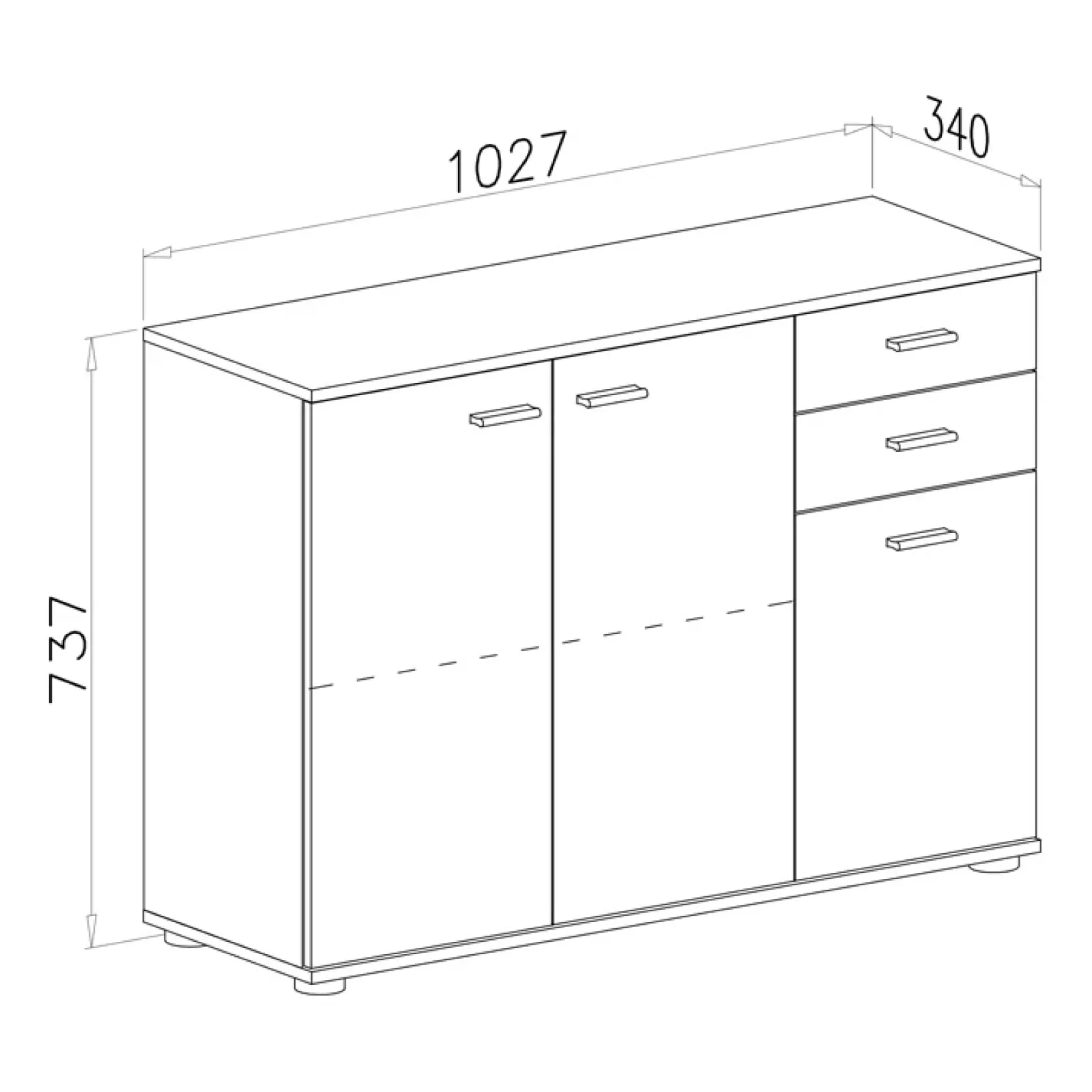 Credenza moderna 103x34cm 3 ante 2 cassetti rovere bianco Ajed