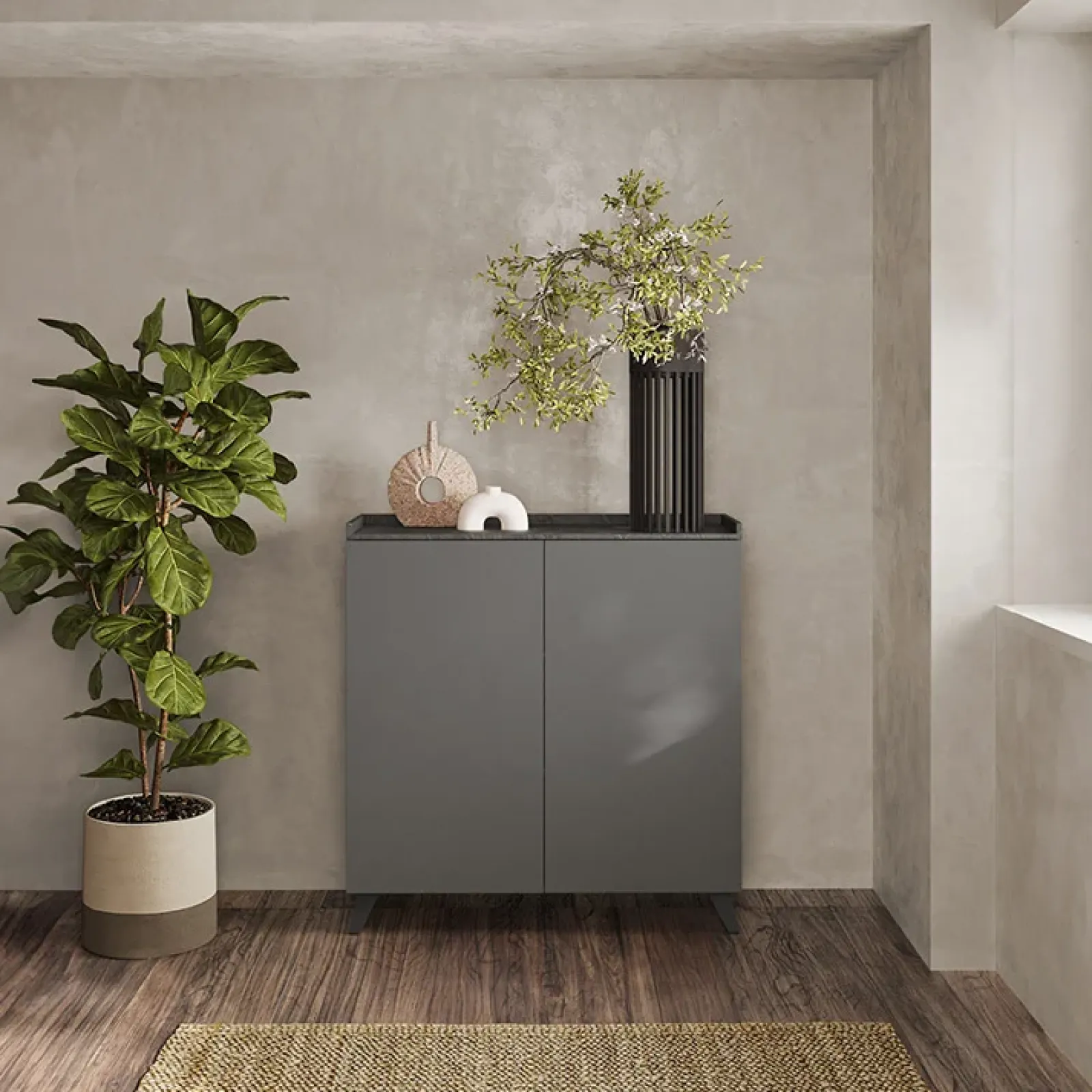 Credenza 121x126cm moderna ossido cemento Jonson, ideale per ogni tipo di ambiente.
