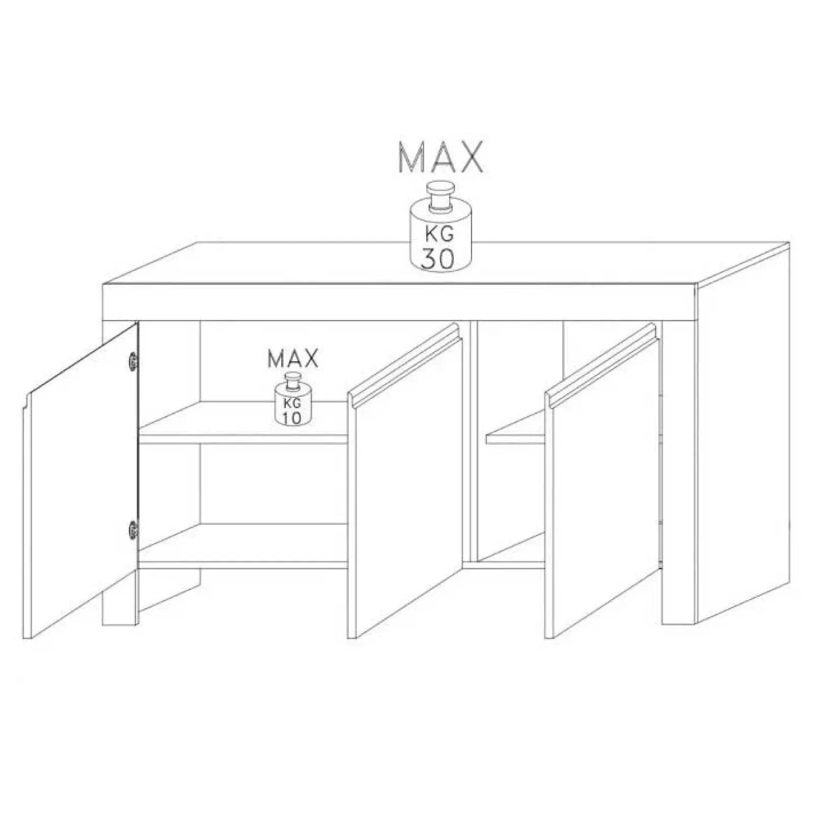 Credenza moderna 3 ante soggiorno 162x82cm bianco lucido Essential