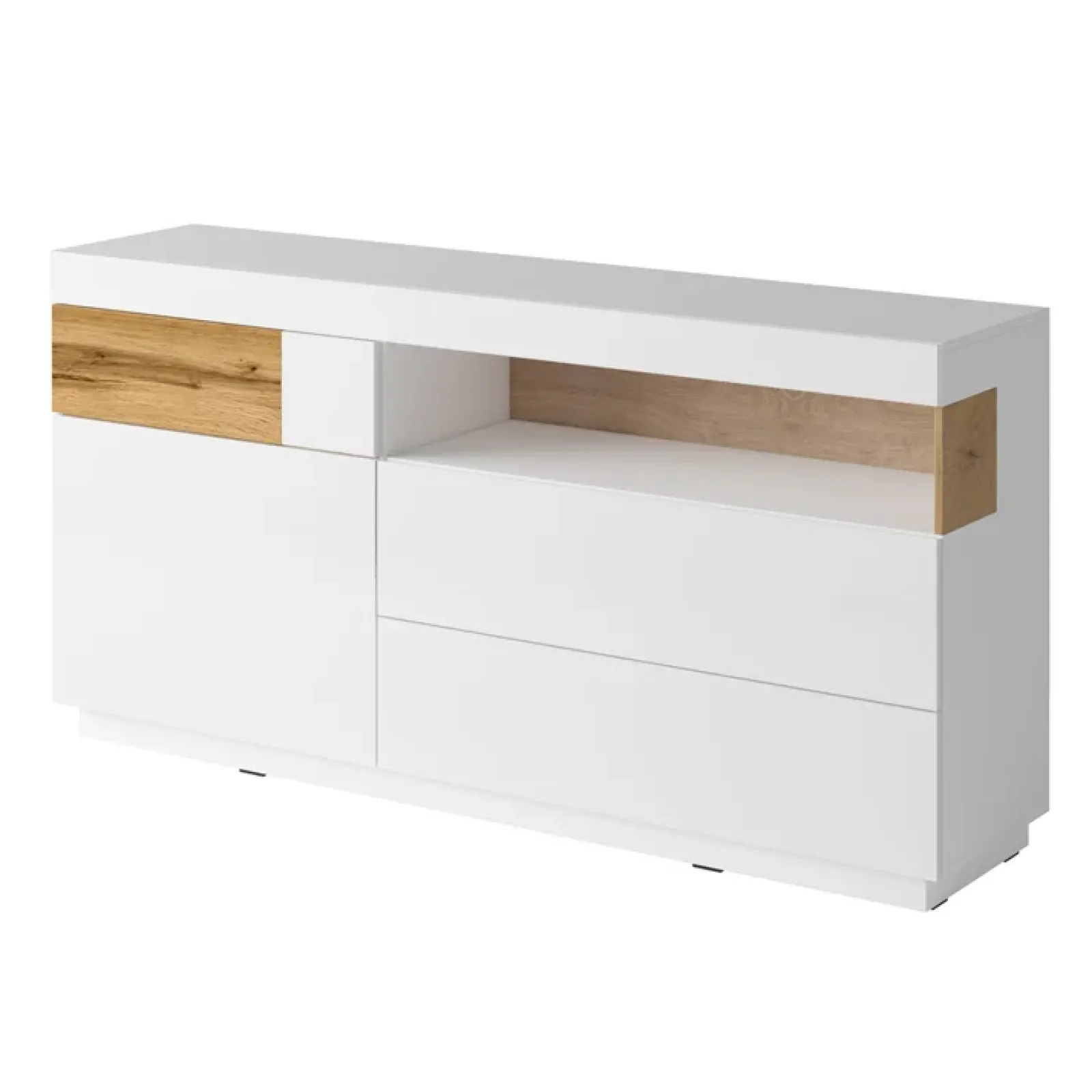 Credenza Bahama 1 anta 3 cassetti bianco lucido rovere, per un soggiorno all’avanguardia, che risulti spazioso, leggero e ordinato.