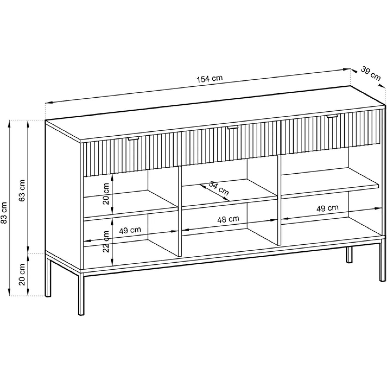 Madia moderna design con cassetti 154x83cm nero 3 ante Alisa