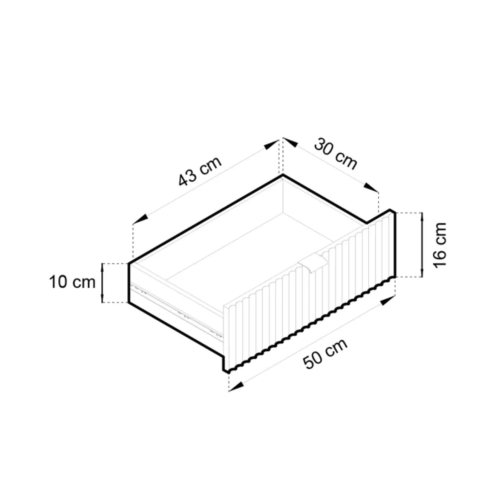 Alla base 3 ante battenti con motivo striato, racchiudo due vani con all’interno un ripiano ciascuno, dove poter organizzare le proprie stoviglie o i propri alimenti. Sopra tre ampi cassettoni sono ideali per custodire oggettistica di prima necessità.
