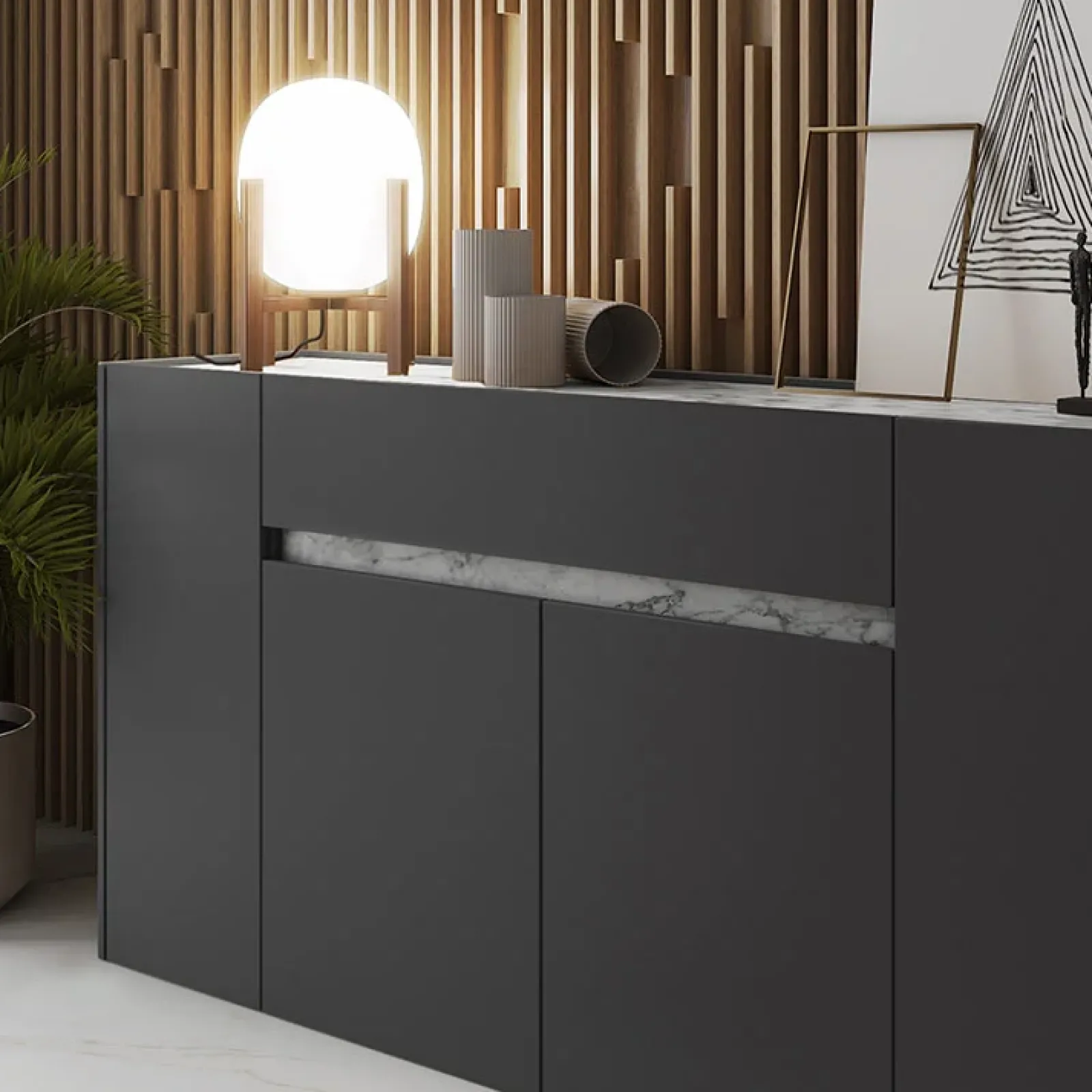 Garnero Arredamenti Credenze Moderne|Madie Moderne-Madia 170x85h cm moderna design antracite marmo Gib Antracite – Marmo bianco