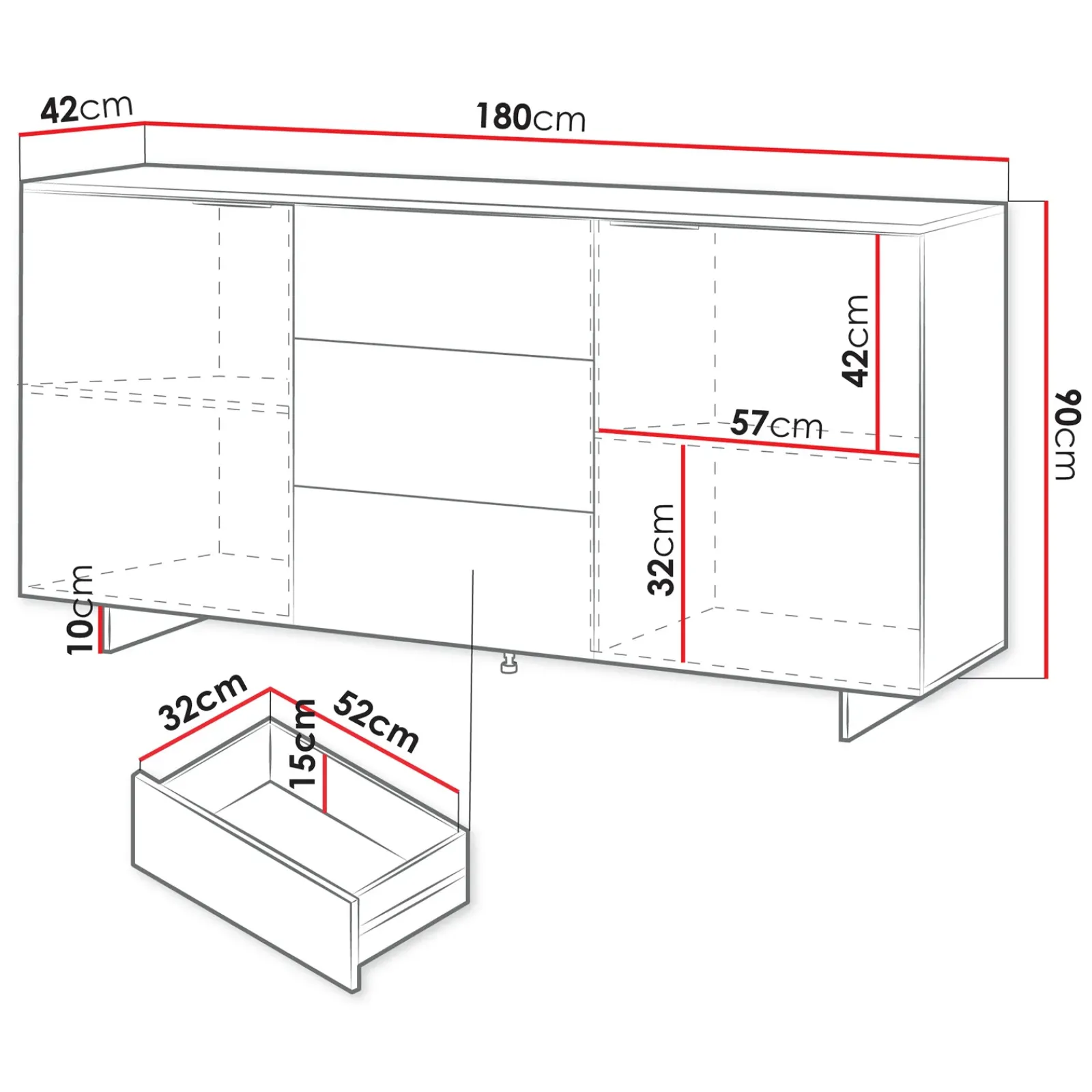 | Dimensioni | L.180 x H.90 x P.42 cm |