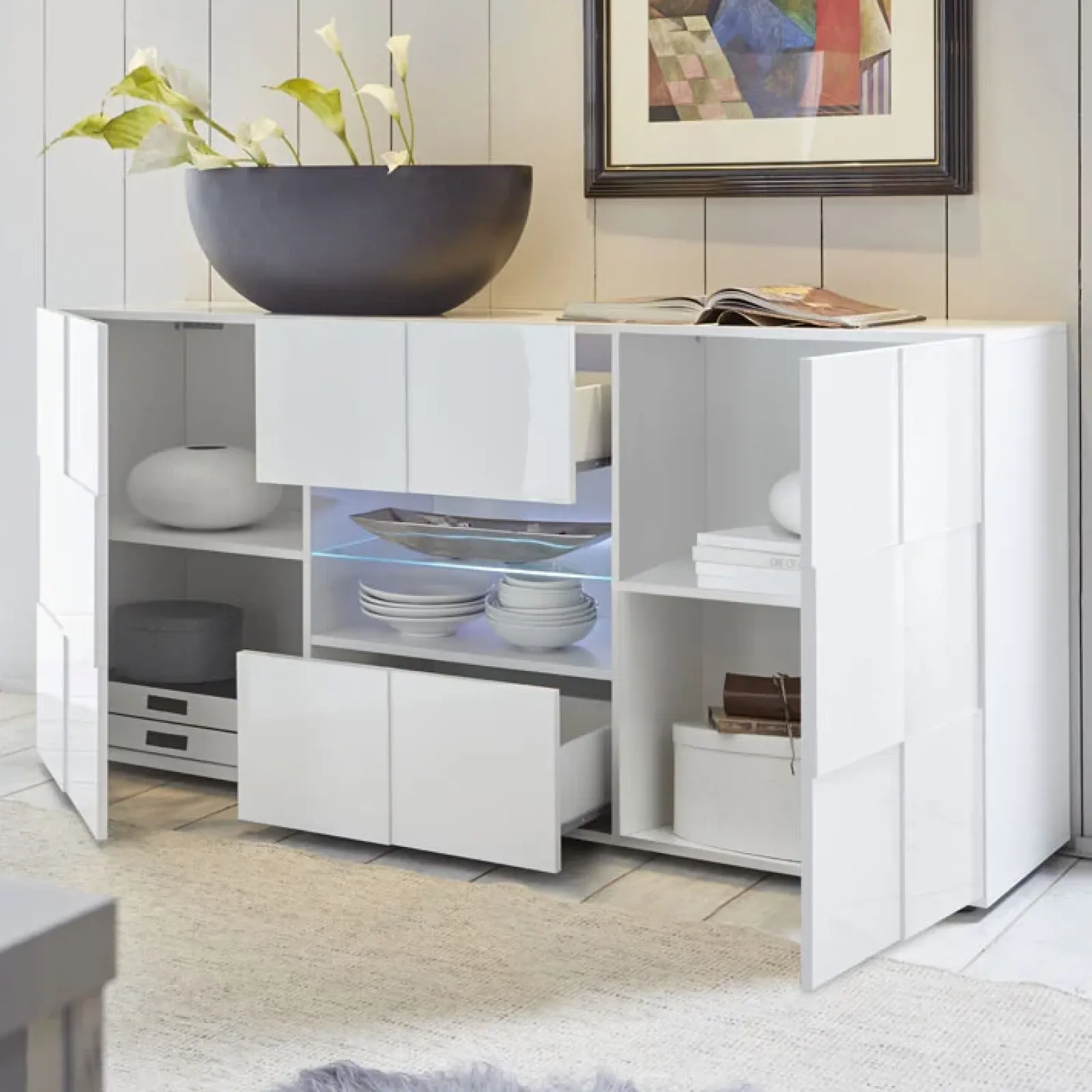Garnero Arredamenti Credenze Moderne|Madie Moderne-Madia 181x84h cm 2 ante 2 cassetti moderna Obsession Bianco Lucido