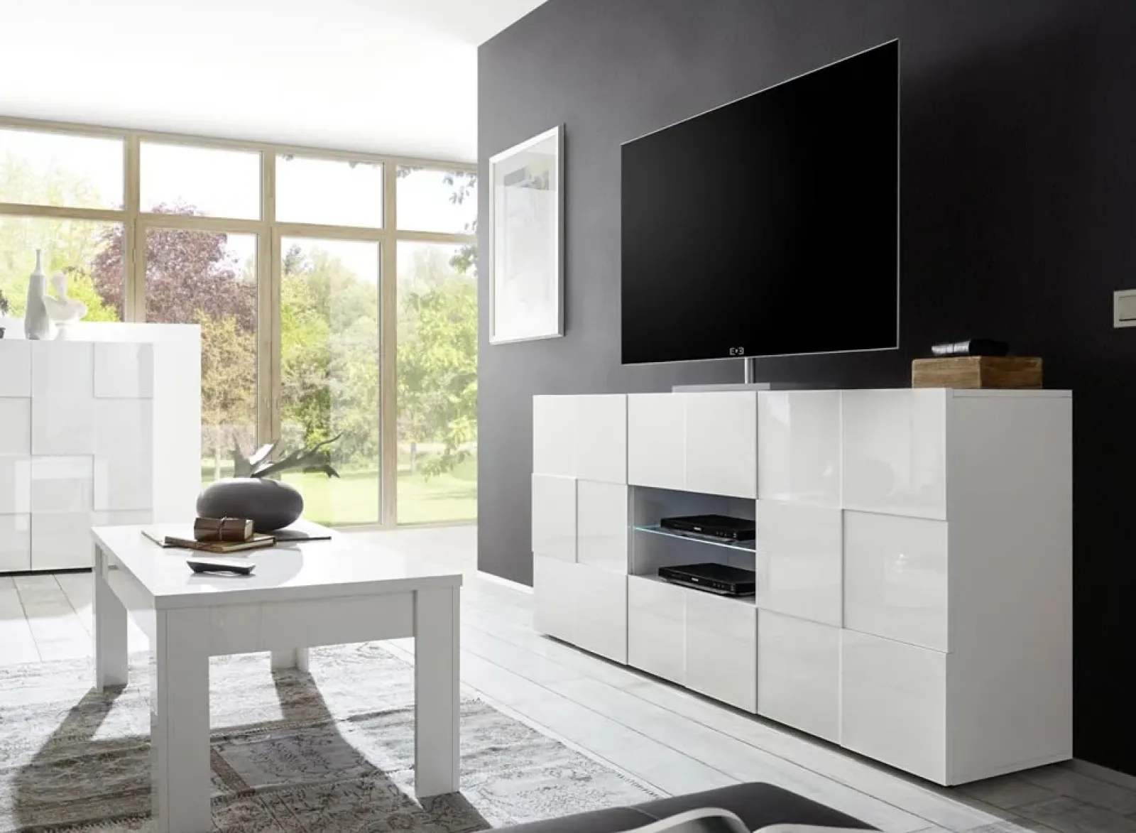 Madia moderna 2 ante 2 cassetti 181x84cm bianco lucido Obsession