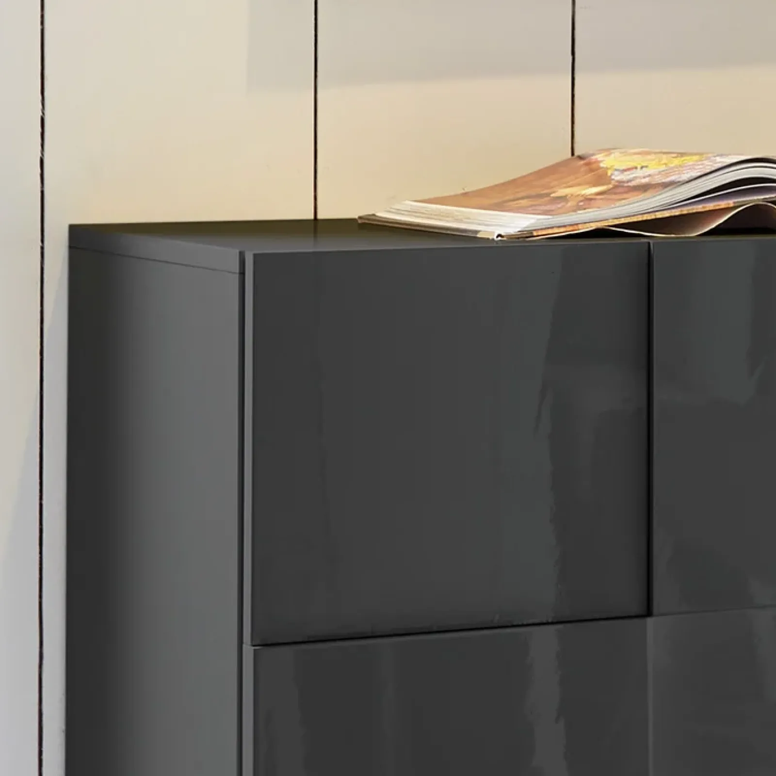 E’ una soluzione che racchiude la pratica funzionalità del mobile da riordino e l’intramontabile eleganza del grigio lucido. Questa finitura trasformerà il design del tuo salotto conferendogli quel tocco di stile che hai sempre sognato!