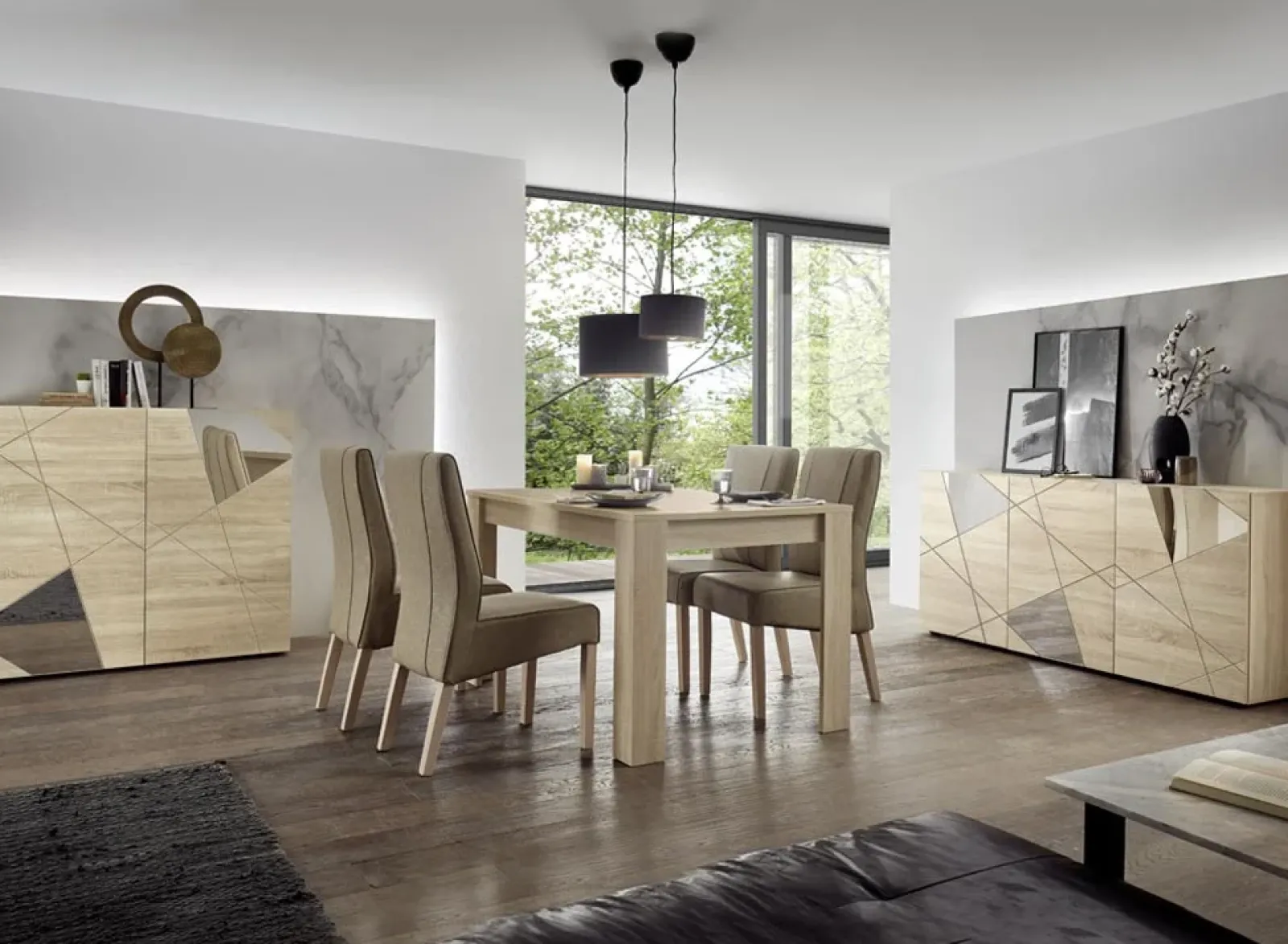 Garnero Arredamenti Credenze Moderne|Madie Moderne-Madia 181x84h cm moderna samoa specchio con serigrafia 3 ante Olimpo Rovere