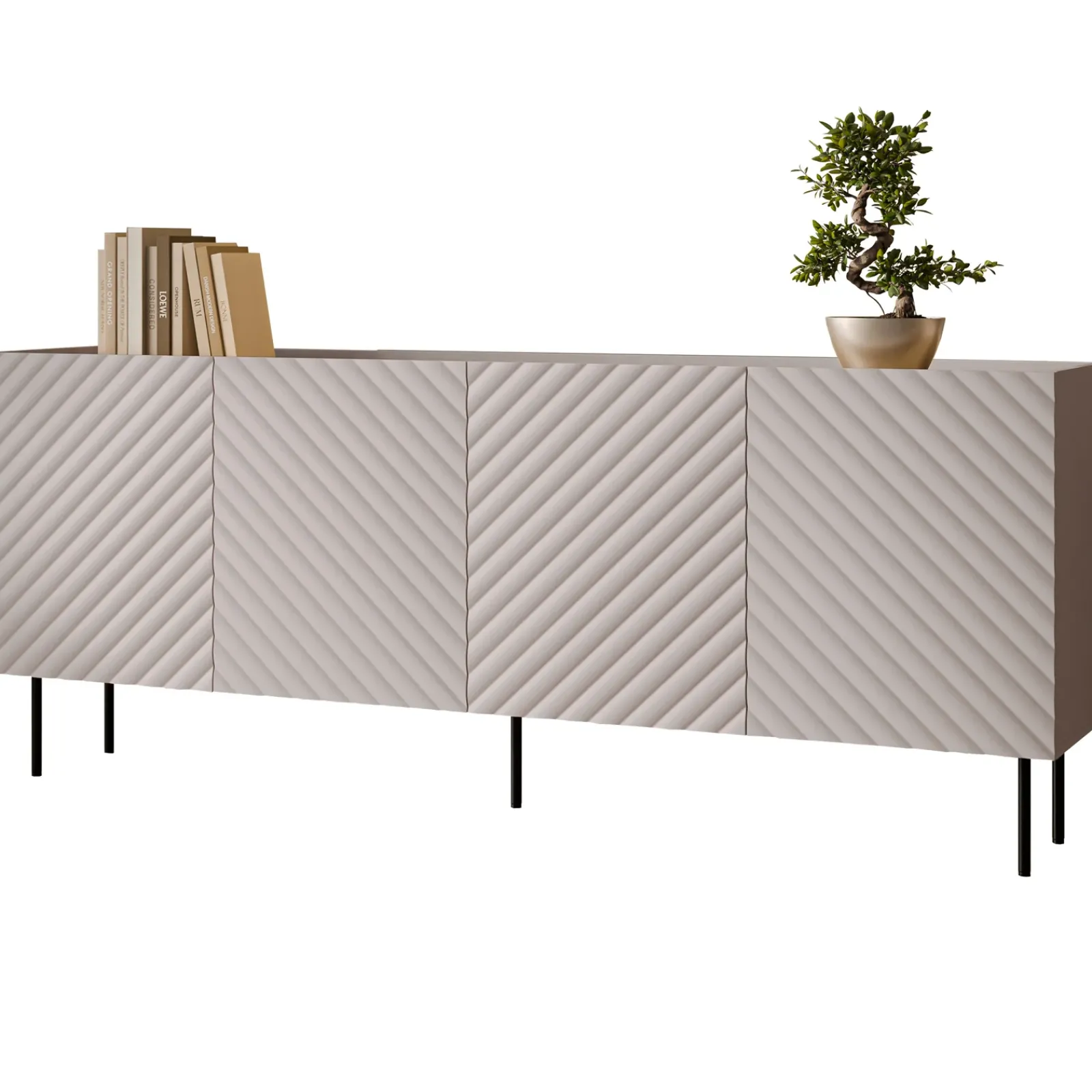 Se cerchi un mobile che sappia combinare ordine, stile e tanto spazio, la Madia 4 ante Daniele è proprio ciò di cui hai bisogno. Con la sua finitura beige e i frontali decorati, questo mobile non è solo funzionale, ma aggiunge un tocco di eleganza discreta a qualsiasi soggiorno. Le sue quattro ante senza maniglie, con frontali leggermente sporgenti, si aprono con un gesto semplice e fluido, rivelando ben otto vani interni, separati da quattro ripiani. Grazie a questa generosa capacità, avrai spazio a volontà per sistemare ogni cosa: dai libri e piatti a cavi e accessori tecnologici, senza mai sacrificare l’ordine. Ogni vano è pensato per ottimizzare lo spazio e rendere facile l’accesso agli oggetti di tutti i giorni. Immagina la superficie superiore della madia come la tela perfetta per le tue decorazioni: un angolo accogliente dove esporre fotografie, piante rigogliose o oggetti che raccontano la tua storia. La Madia 4 ante Daniele non è solo un mobile, ma una vera e propria dichiarazione di stile. I piedini in metallo nero completano il look con un tocco contemporaneo, sollevando la madia da terra e facilitando la pulizia. Elegante, pratica e capiente, la Madia 4 ante Daniele è il mobile che trasforma il tuo soggiorno in un rifugio organizzato e stiloso.