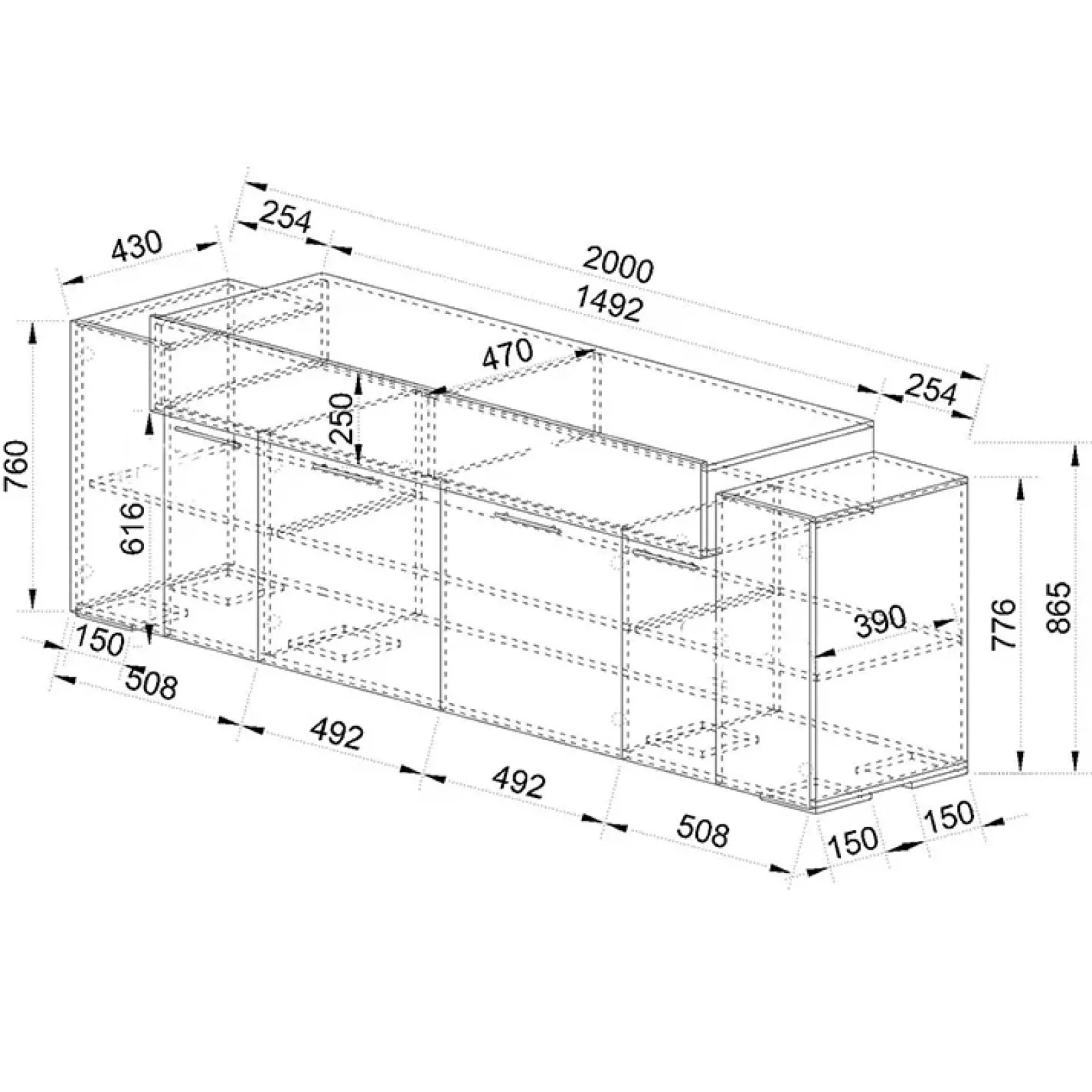 | Dimensioni | L.200 x P.47 x H.86,5 cm |