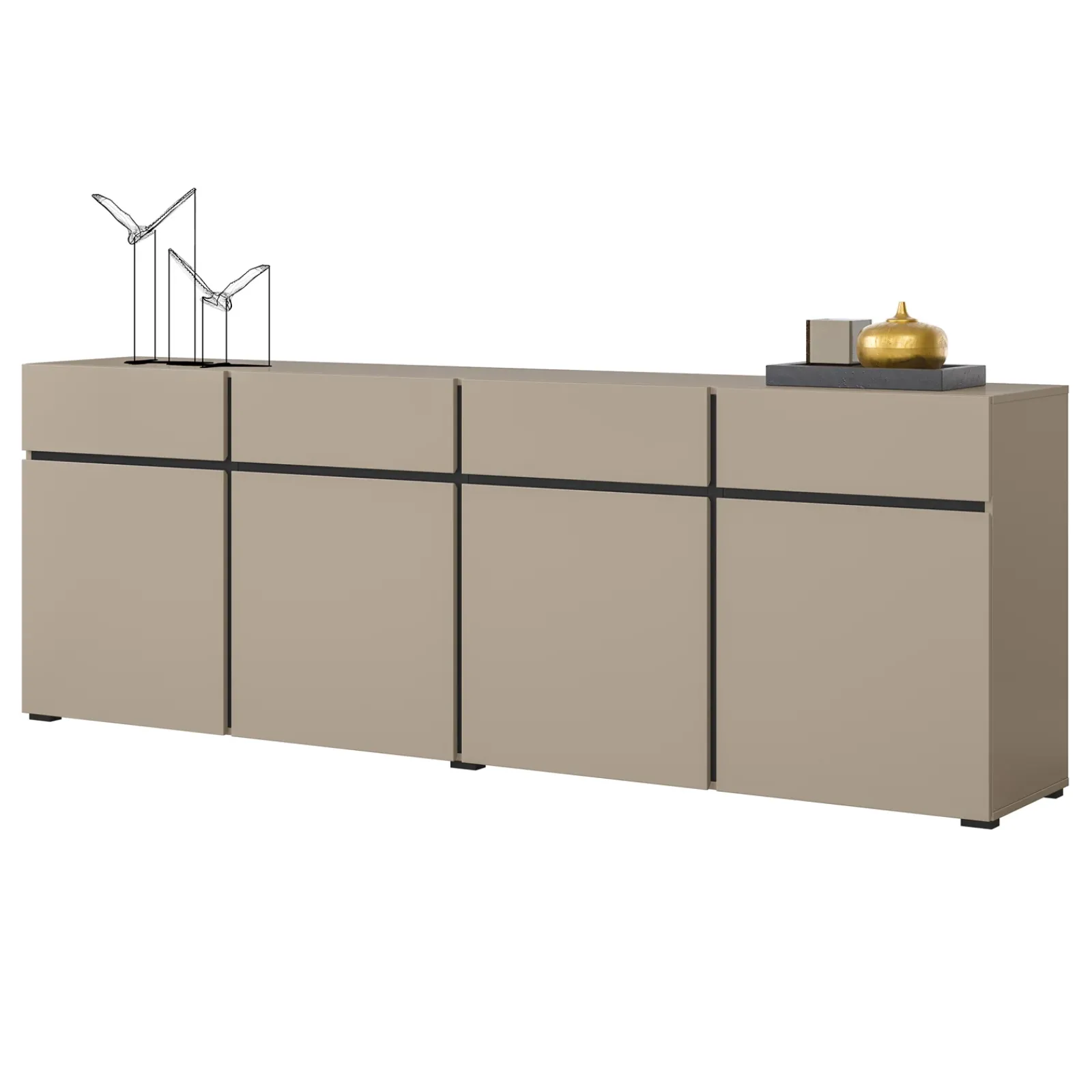 Madia moderna 225x78cm 4 ante 4 cassetti tortora nero Lolla