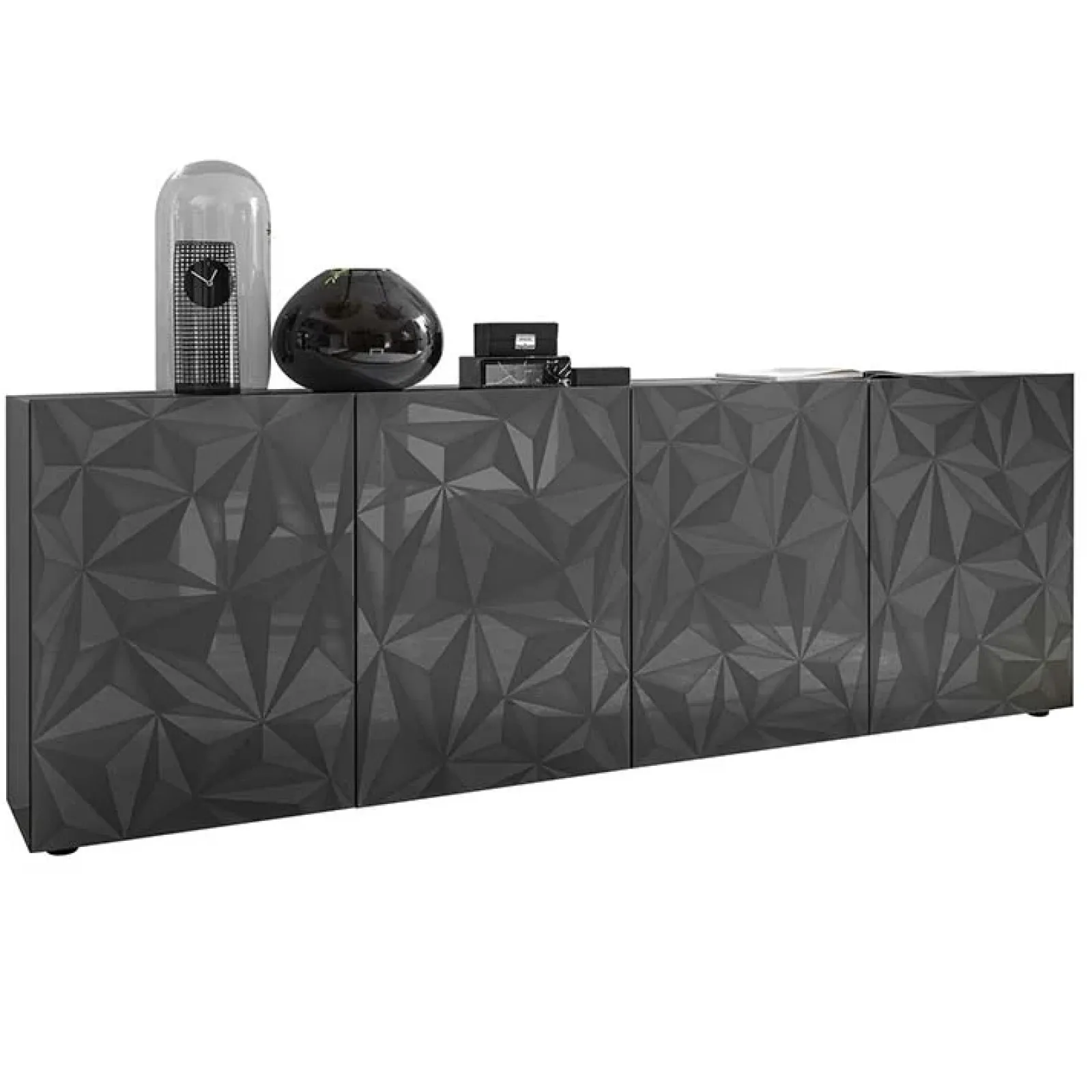 Garnero Arredamenti Credenze Moderne|Madie Moderne-Madia 241x84h cm 4 ante soggiorno grigio con serigrafia Marvis Antracite