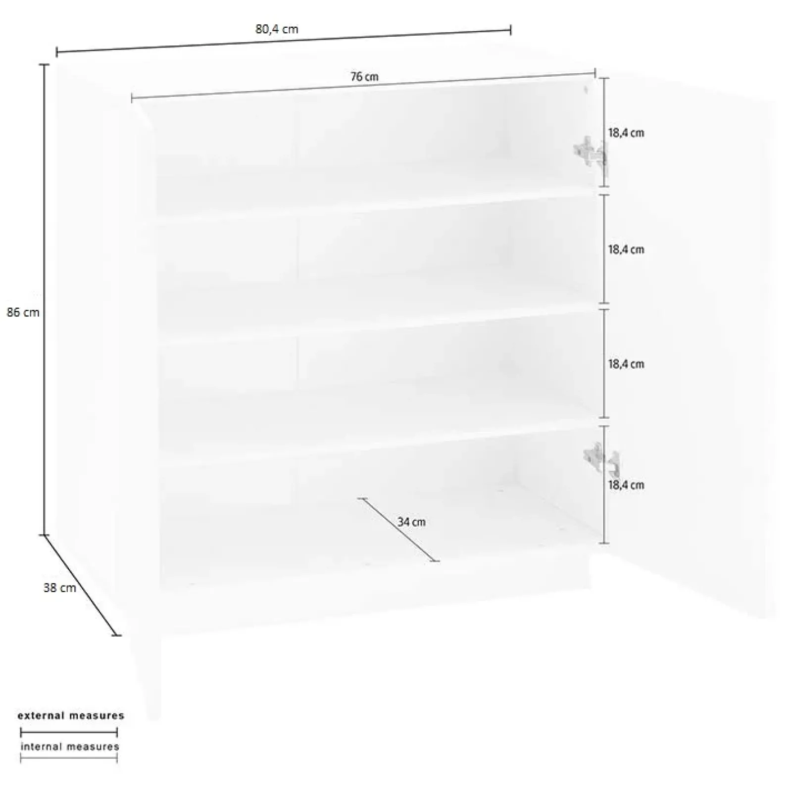 - dimensioni: L.80,4 x P.38 x H.86cm