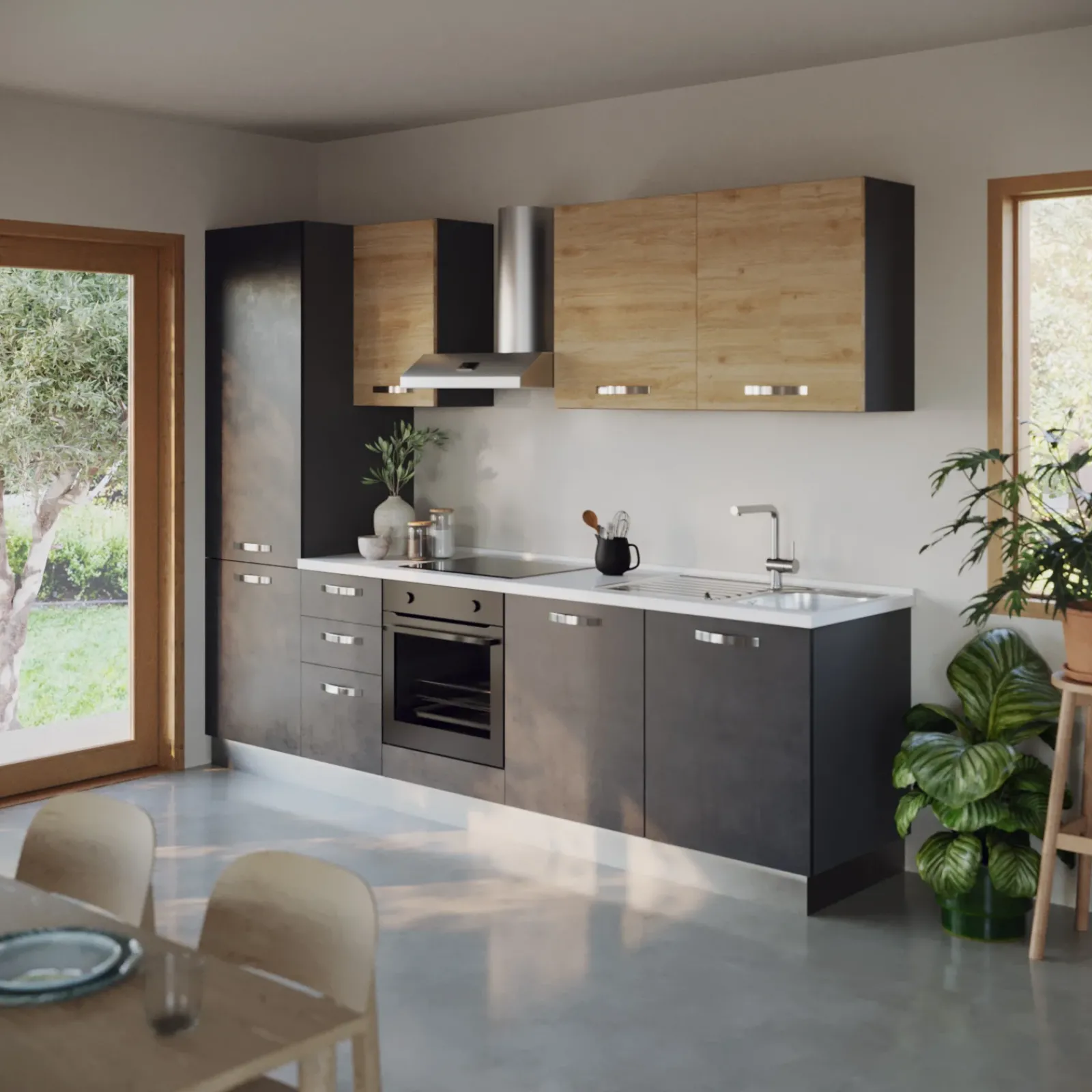 Garnero Arredamenti Cucine Complete|Cucine Complete-Cucina 285cm reversibile moderna lineare rovere antracite GourmetSpace