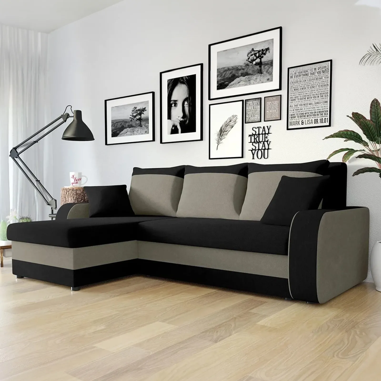 Divano angolare letto 238x147cm 3 posti grigio nero Flow, è la soluzione perfetta per completare il tuo soggiorno rendendolo confortevole e moderno!