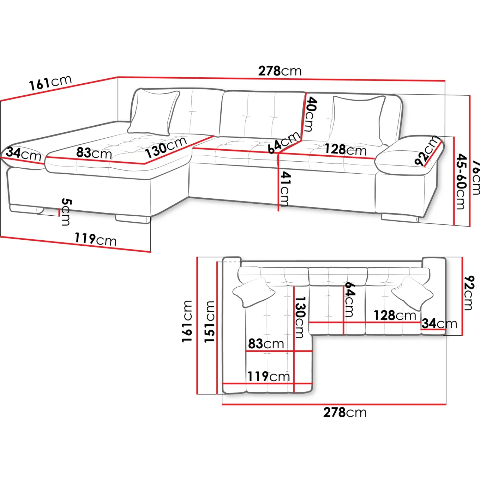 | Dimensioni | L.278 x H.76 x P.161 cm |