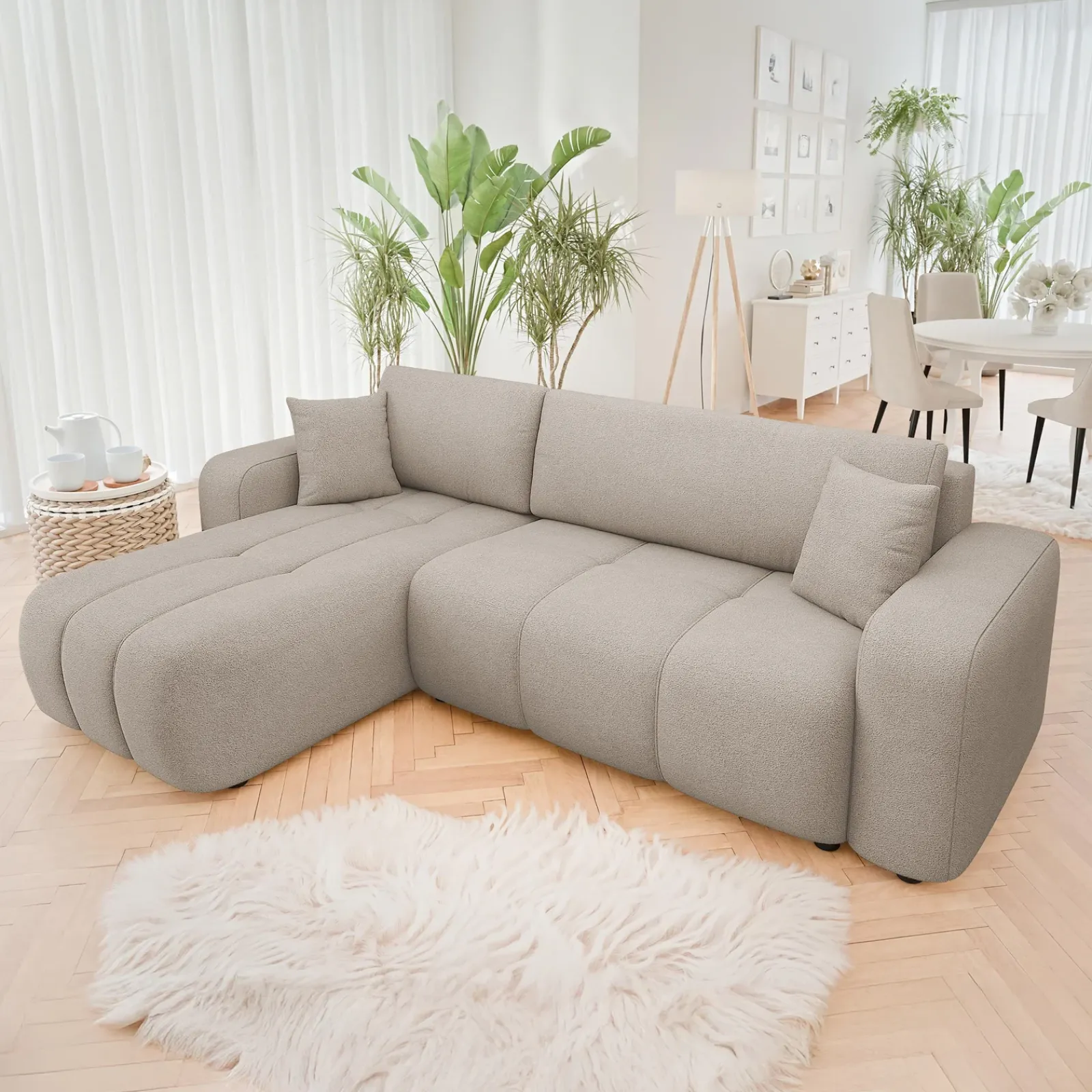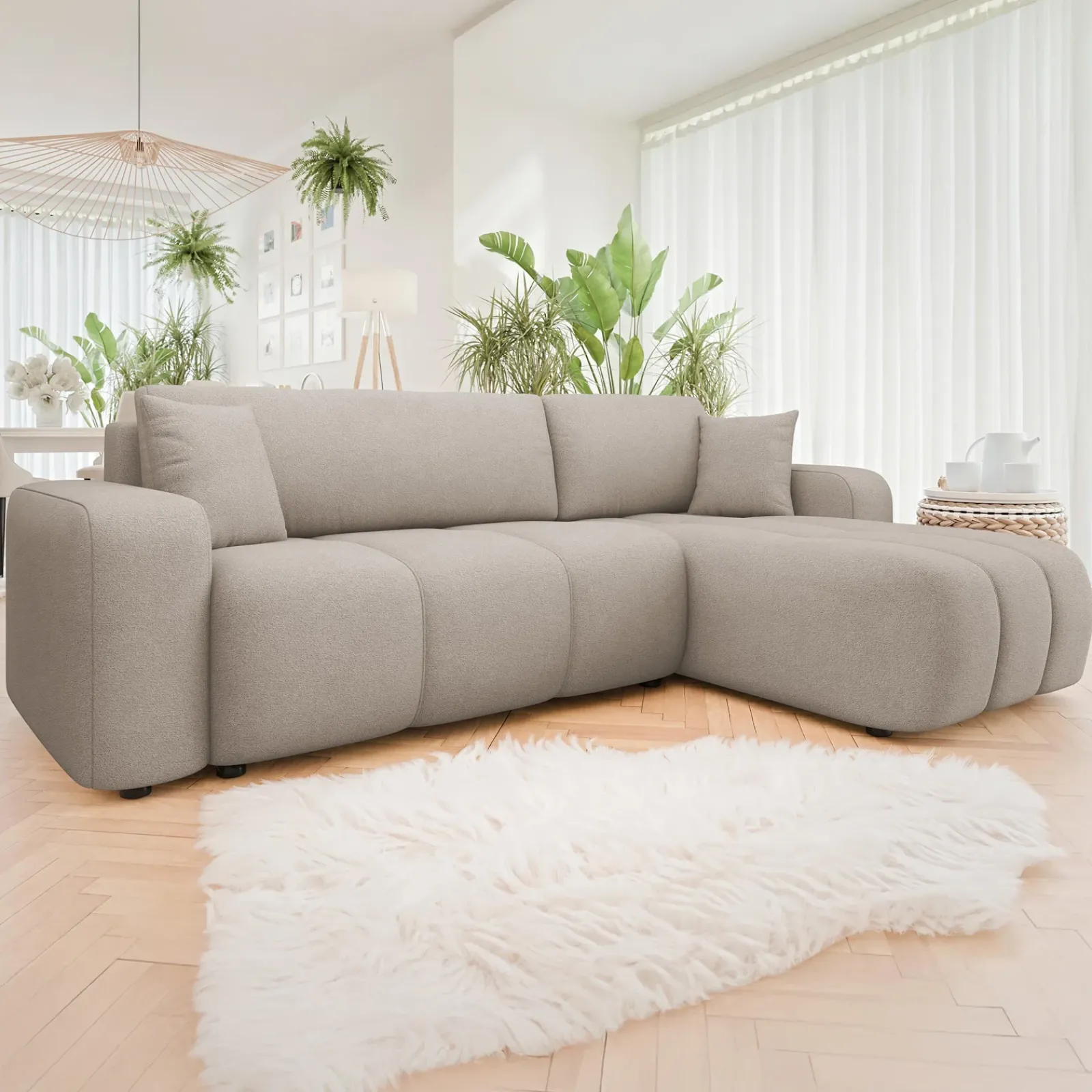 Il divano letto angolare Orama è la scelta perfetta per chi cerca comodità, praticità e stile in un’unica soluzione d’arredo. Con la sua elegante tonalità beige scuro, si integra armoniosamente in qualsiasi ambiente, donando calore e carattere alla stanza.