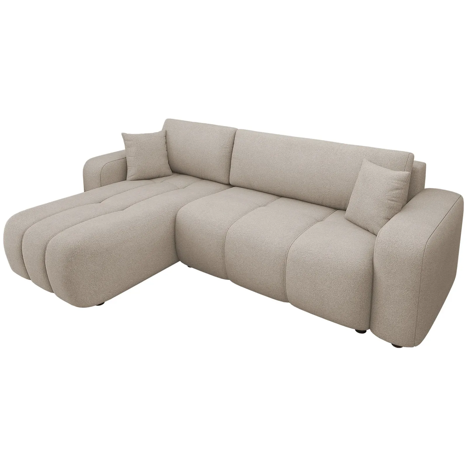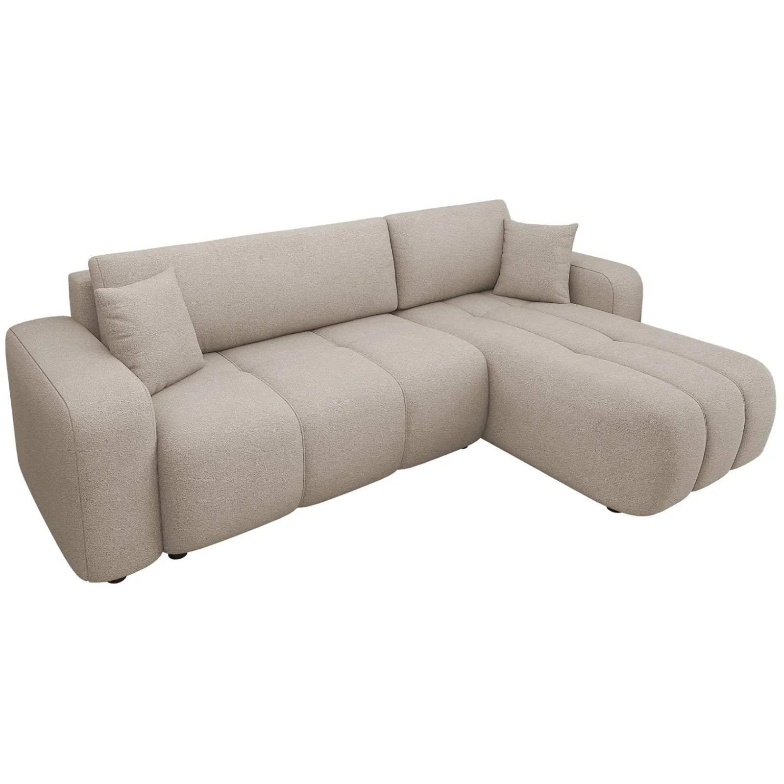 Divano letto angolare 3 posti 244x145cm con contenitore tessuto beige scuro Orama