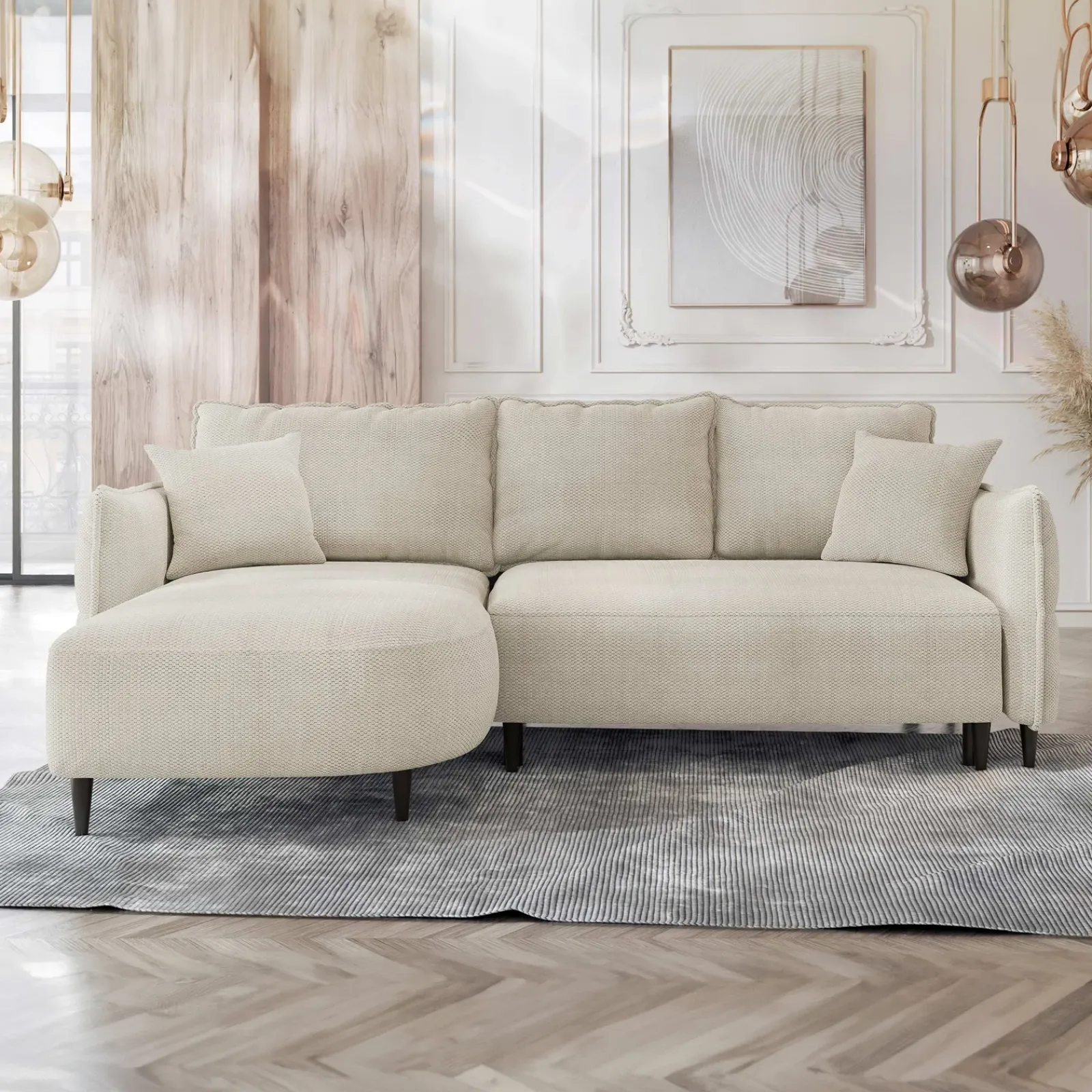 Divano letto angolare 3 posti 244x165cm tessuto beige Lollypop