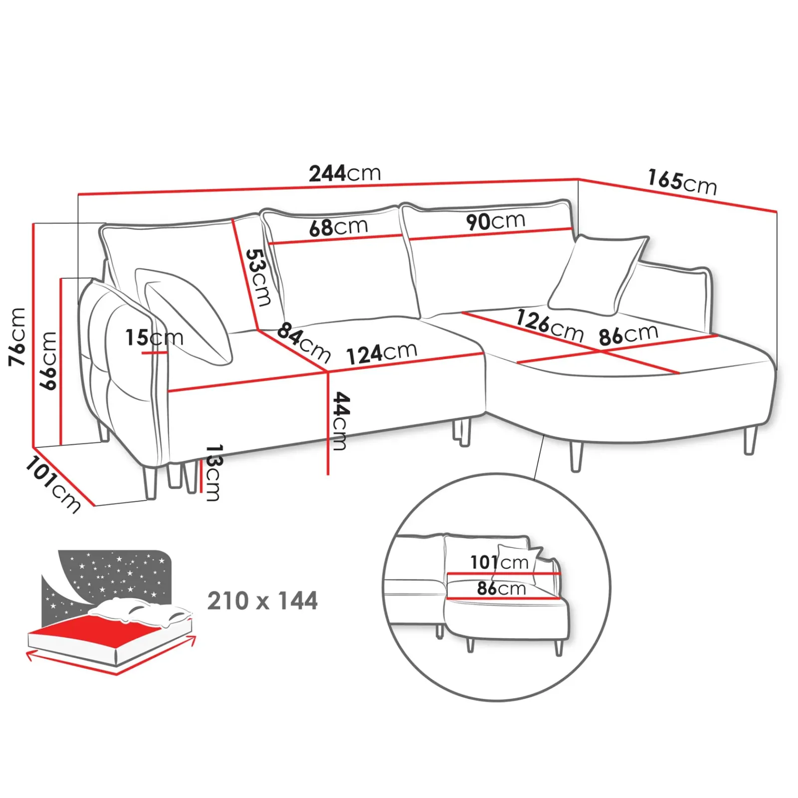 | Dimensione superficie letto | 210×144 cm |