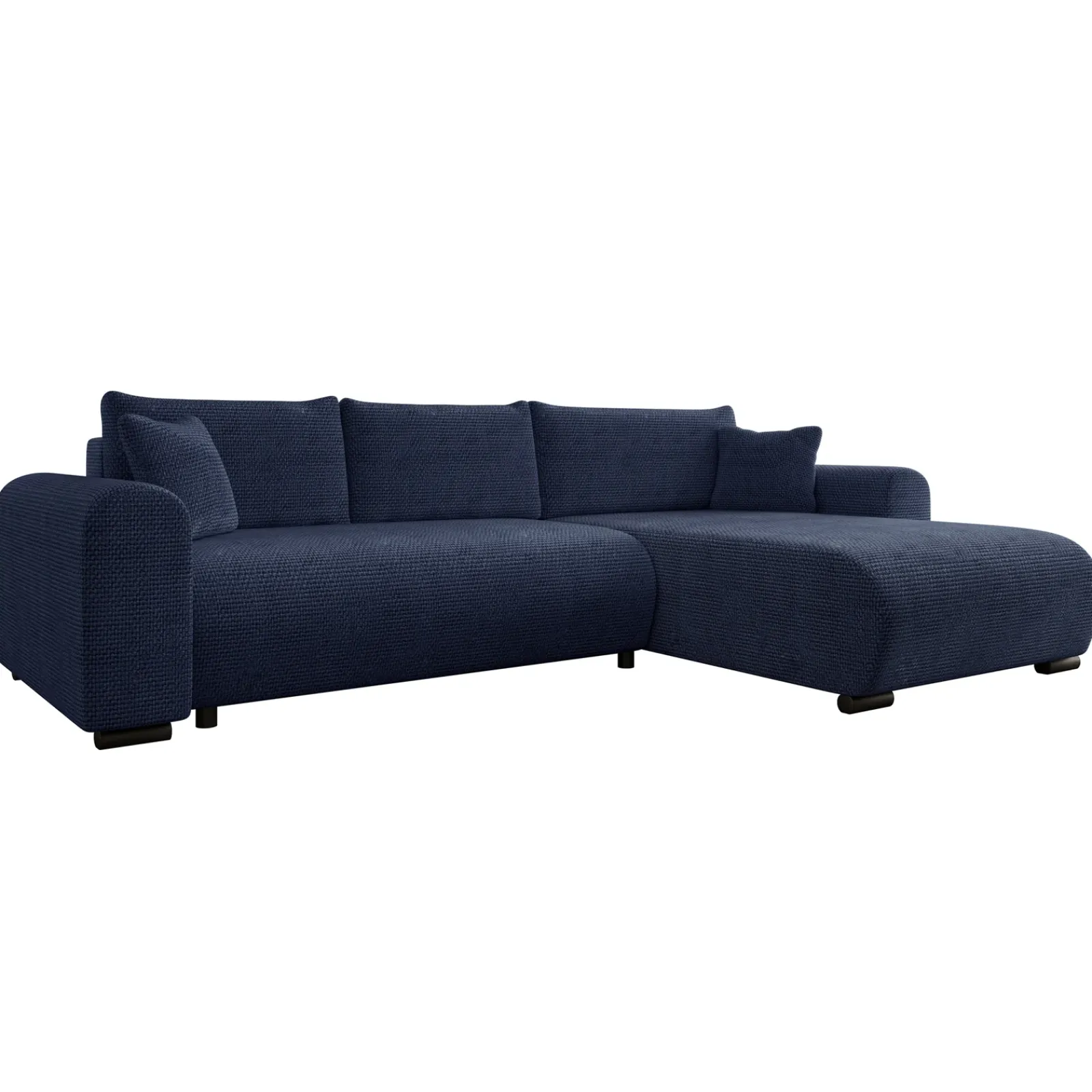 Divano letto angolare 4 posti 285x188cm con contenitore a trama spessa blu Soft