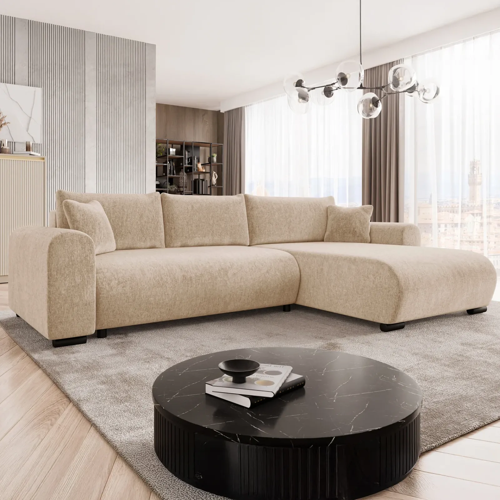 Garnero Arredamenti Divani Angolari|Divani Letto-Divano letto angolare 4 posti 285x188cm con contenitore imbottito tessuto beige Soft Tessuto Clara Beige