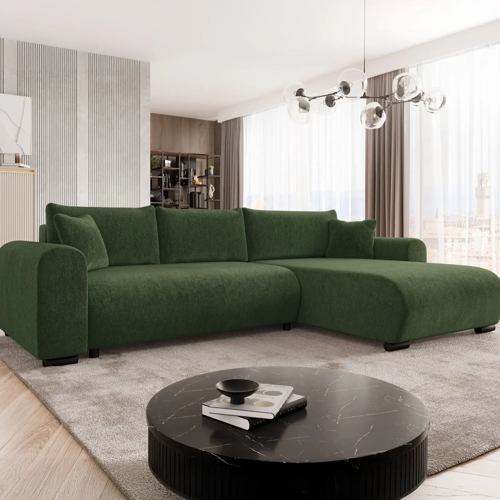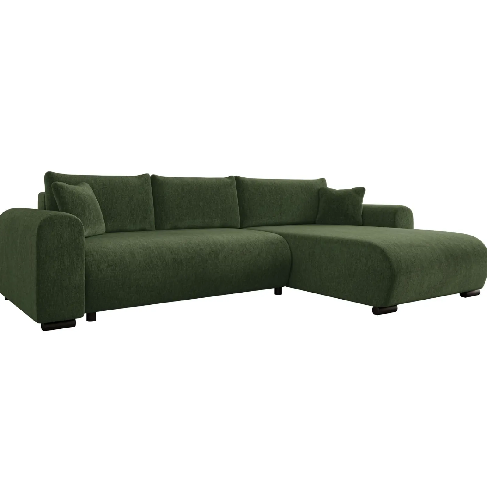 Divano letto angolare 4 posti 285x188cm con contenitore imbottito tessuto verde Soft