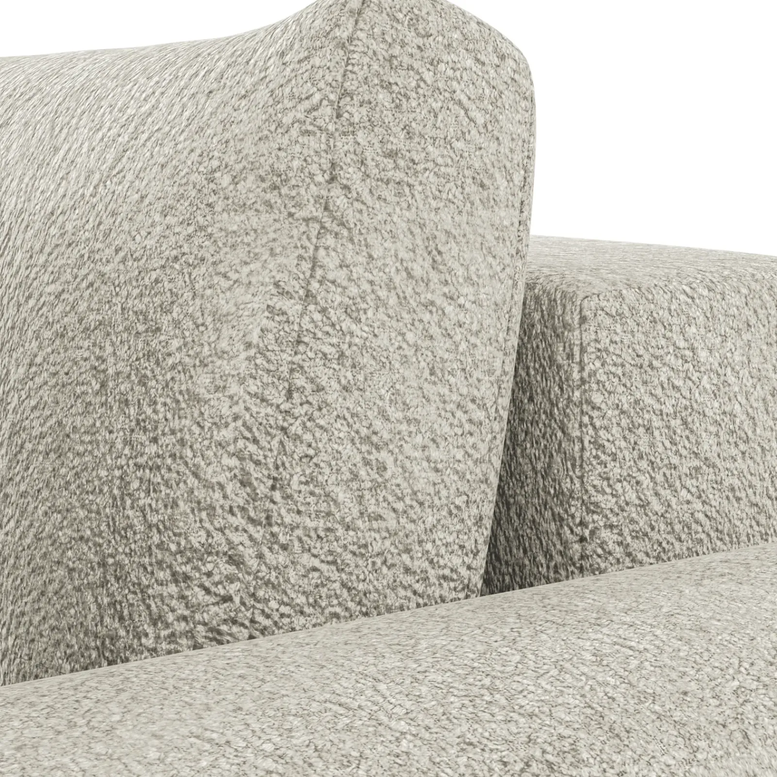 Lo schienale è arricchito da cuscini imbottiti mobili con cerniera, che assicurano un sostegno confortevole e personalizzabile, oltre a facilitare la pulizia e la manutenzione. Il rivestimento in tessuto bouclé beige chiaro conferisce al divano un aspetto sofisticato e materico, perfetto per arricchire l’ambiente con un tocco contemporaneo e di carattere.
