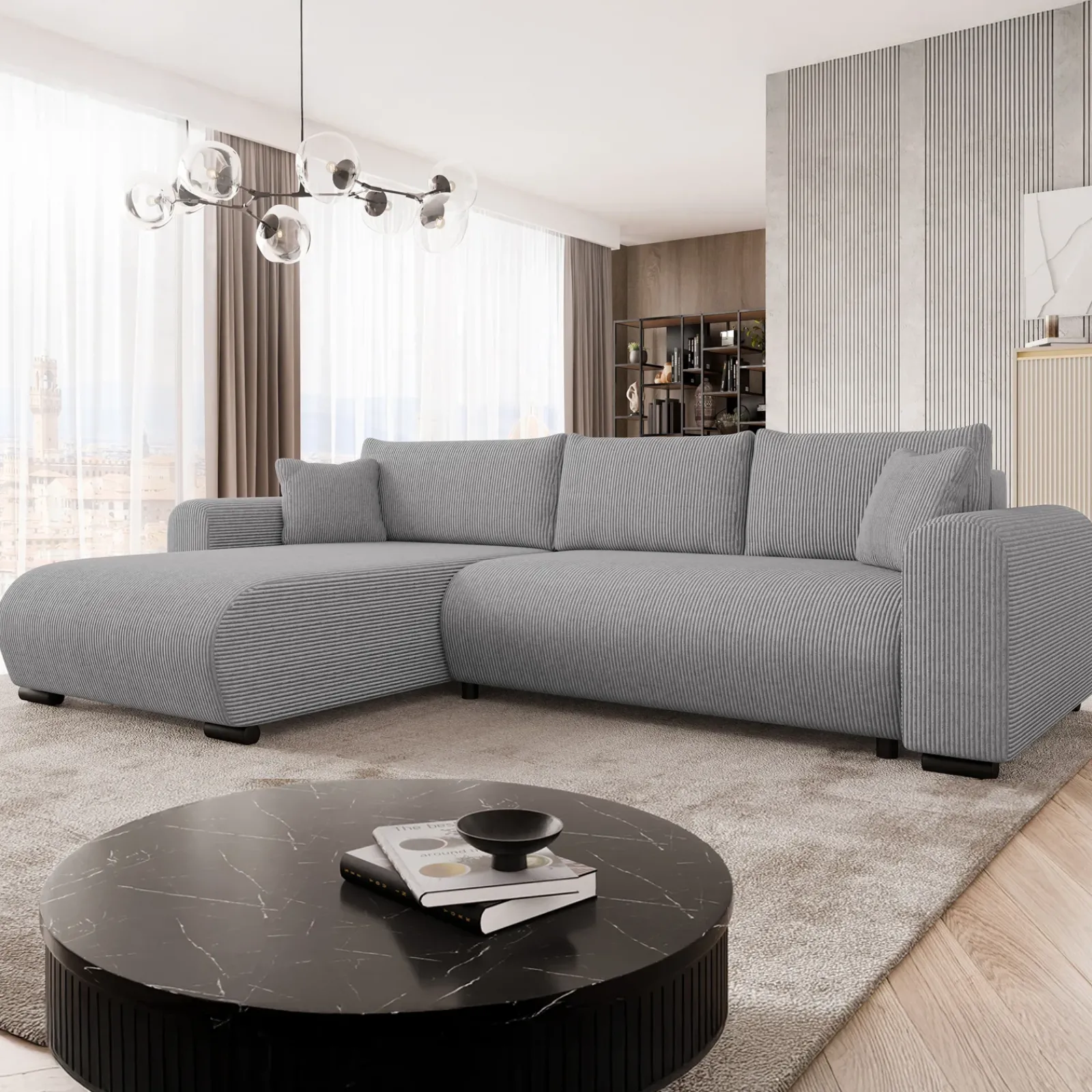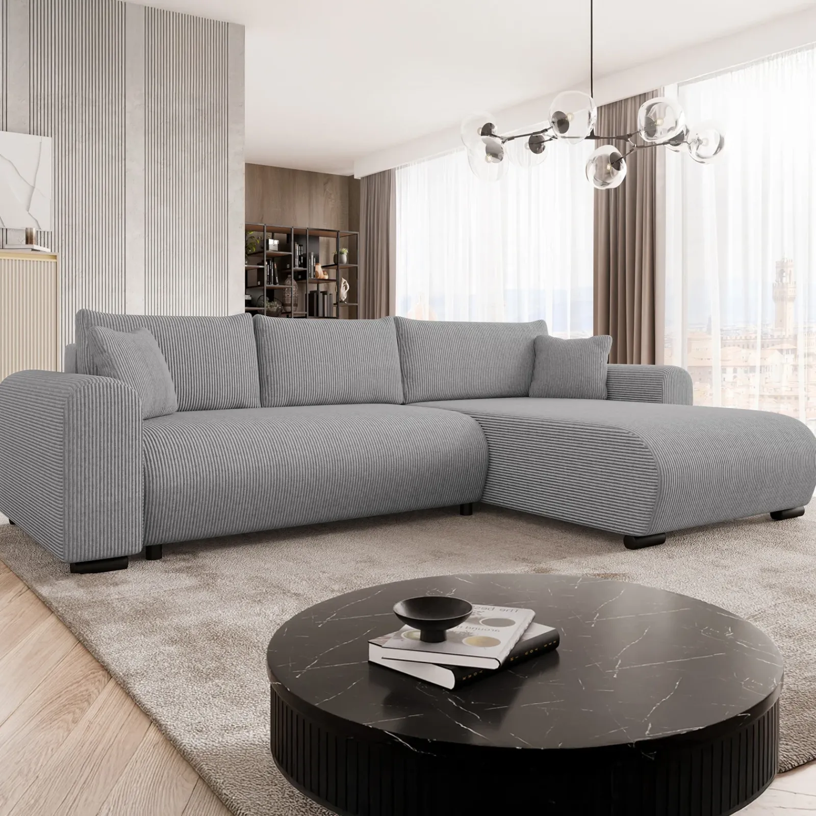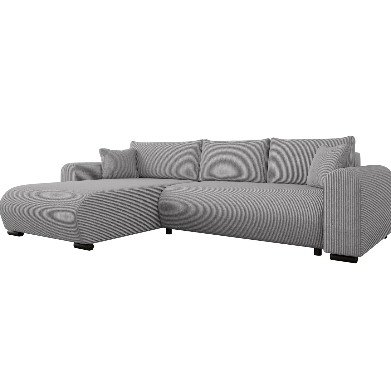 Divano letto angolare 4 posti 285x188cm con contenitore tessuto velluto a coste grigio Soft