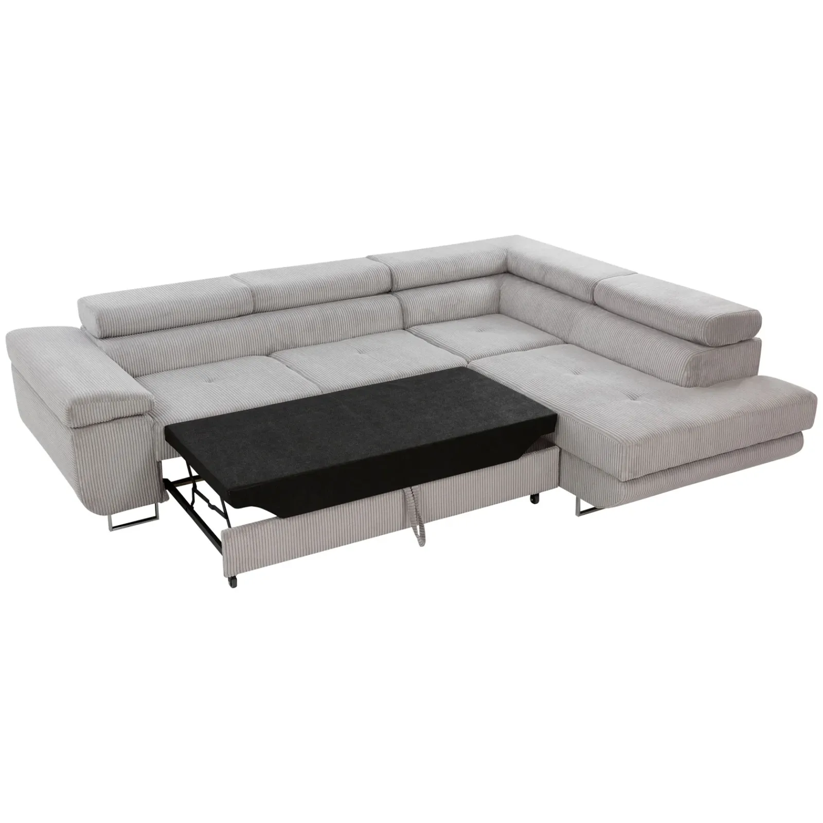 Divano letto angolare destra 4 posti 274x203cm velluto a coste grigio Bormio