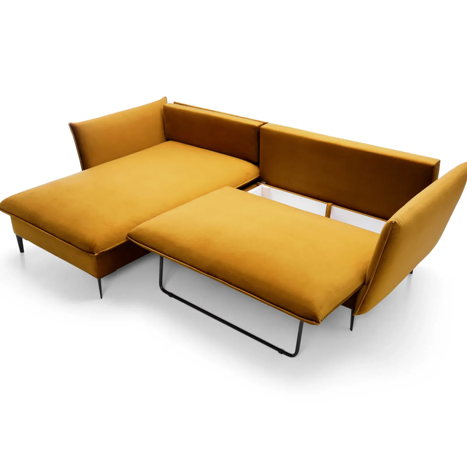 Garnero Arredamenti Divani Angolari|Divani Letto-Divano letto angolare sinistro 3 posti 258x167cm tessuto giallo senape Lushify Tessuto Riviera Vellutato Senape