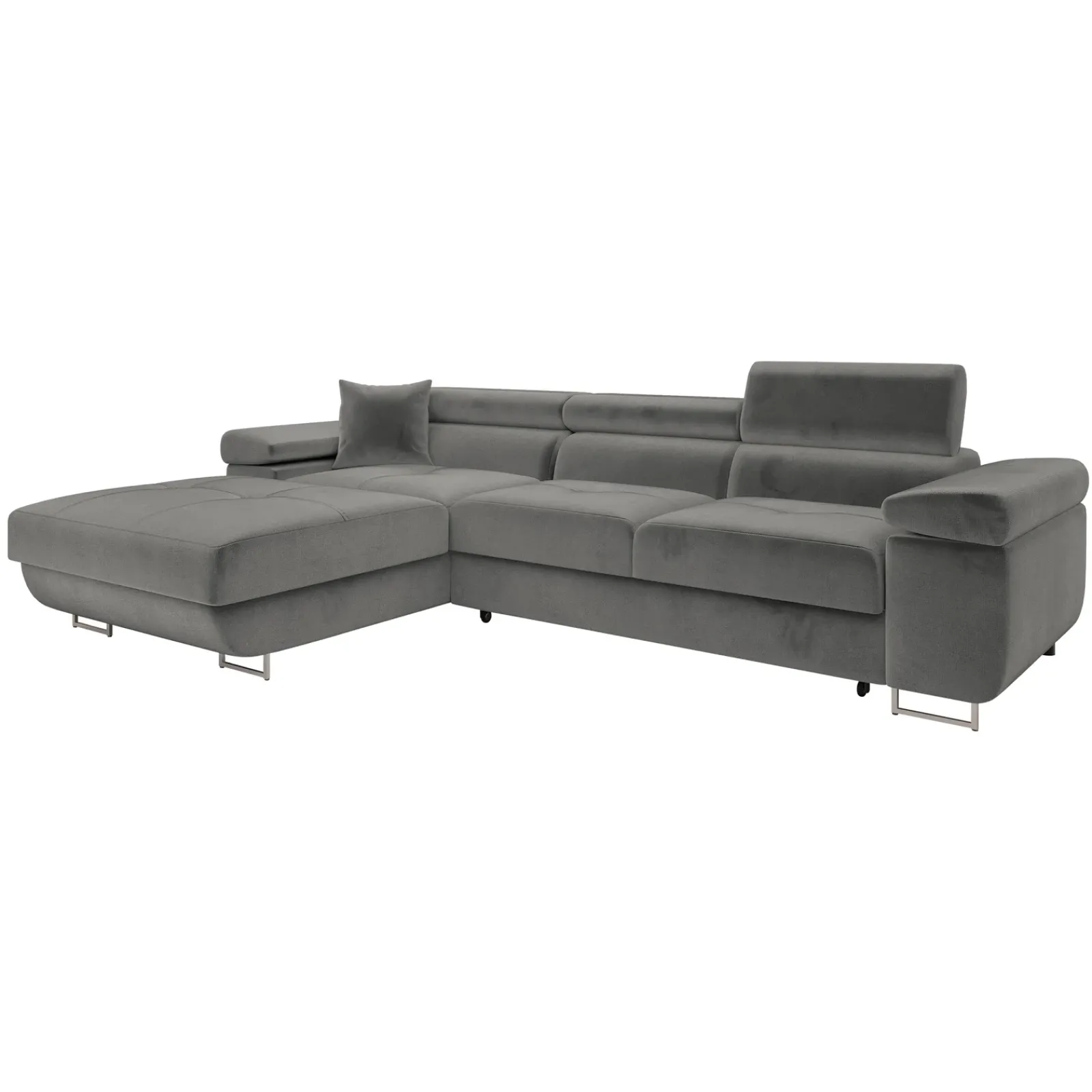 Garnero Arredamenti Divani Angolari|Divani Letto-Divano letto con angolo a destra 4 posti 280x170cm box contenitore vellutato grigio Elvio Tessuto Vellutato Manila Grigio