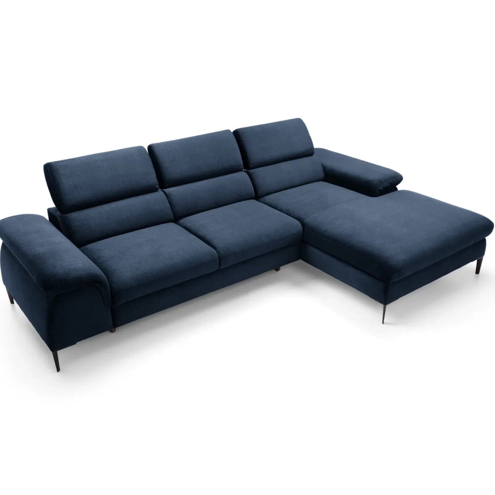 Garnero Arredamenti Divani Angolari|Divani Letto-Divano letto regolabile angolare destra 4 posti 288x182cm tessuto blu Loungey Tessuto Vellutato Vogue Blu