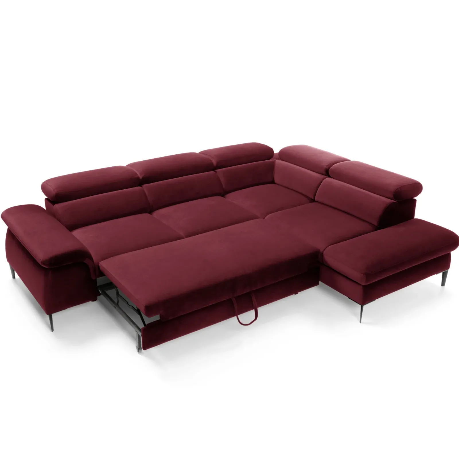 Garnero Arredamenti Divani Angolari|Divani Letto-Divano letto regolabile angolare destra 5 posti 280x214cm tessuto rosso bordeaux Snuggity Tessuto Vellutato Vogue Bordeaux