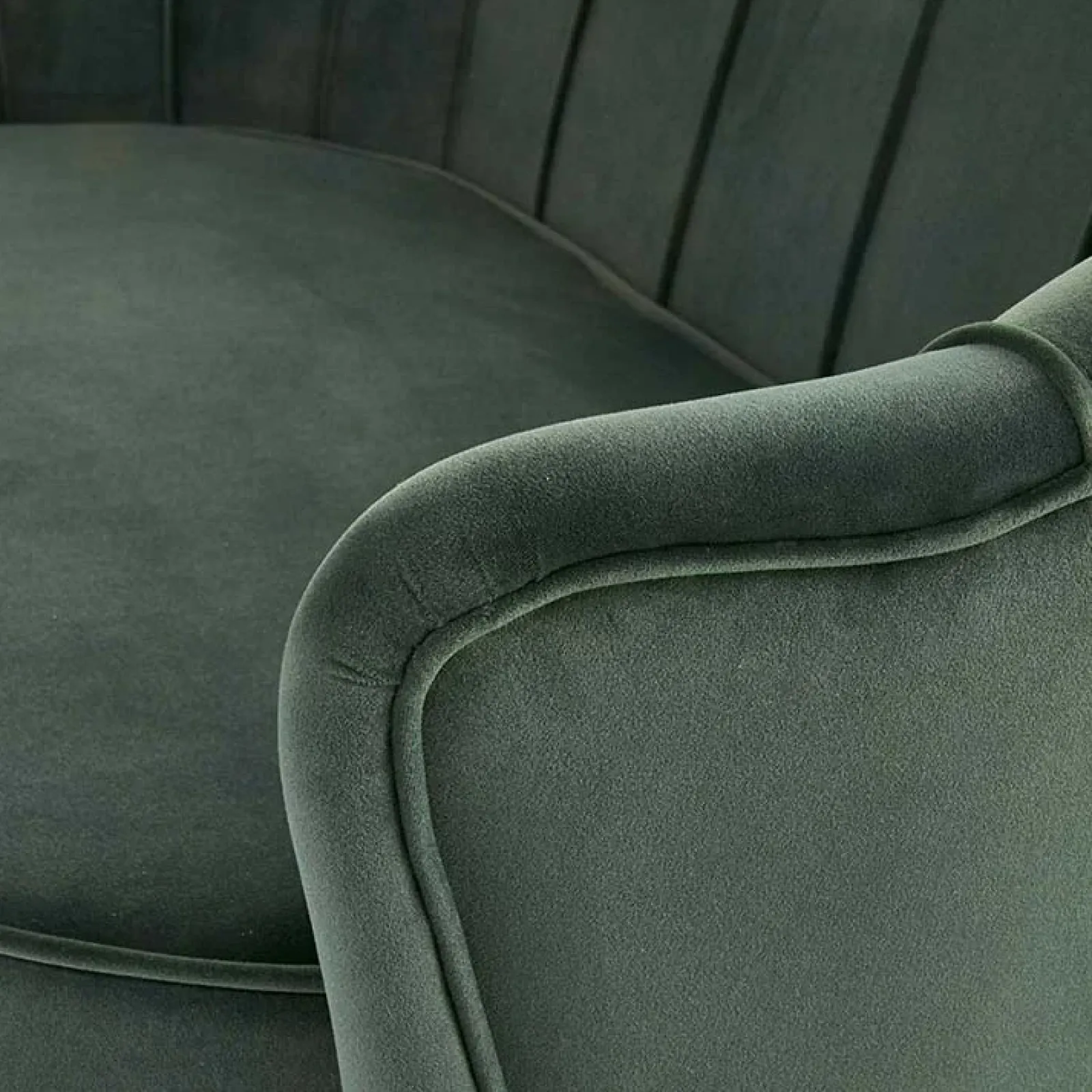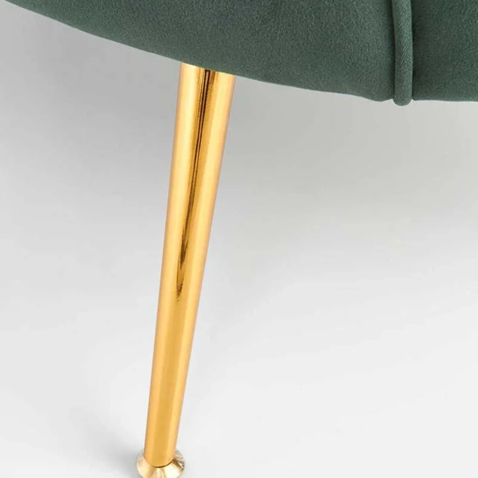 Divanetto imbottito Gabriella verde in velluto gambe oro: caratterizzato da linee delicate e forme armoniose, questo divanetto è perfetto per donare un tocco di classe in più nell’ambiente dove viene inserito.