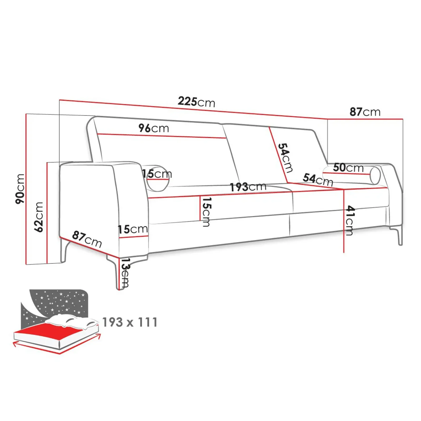 | Dimensioni superficie letto | 193 x 111 cm |