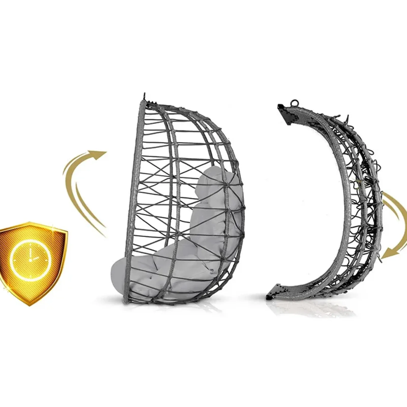 Immergiti nell’atmosfera rilassante del tuo giardino mentre ti lasci cullare dolcemente dalla sedia a dondolo Breeze. Il suo design unico, che richiama le linee sinuose e avvolgenti di un bozzolo, ti avvolge in un abbraccio. E non dimenticare il cuscino incluso, che aggiunge un tocco di morbidezza e eleganza al tuo momento di relax all’aria aperta.