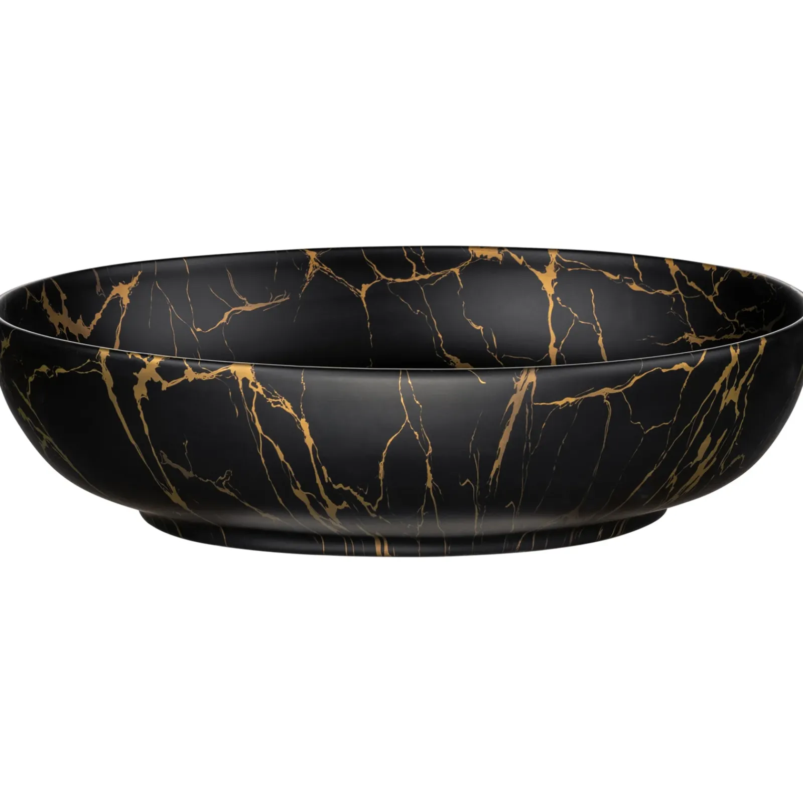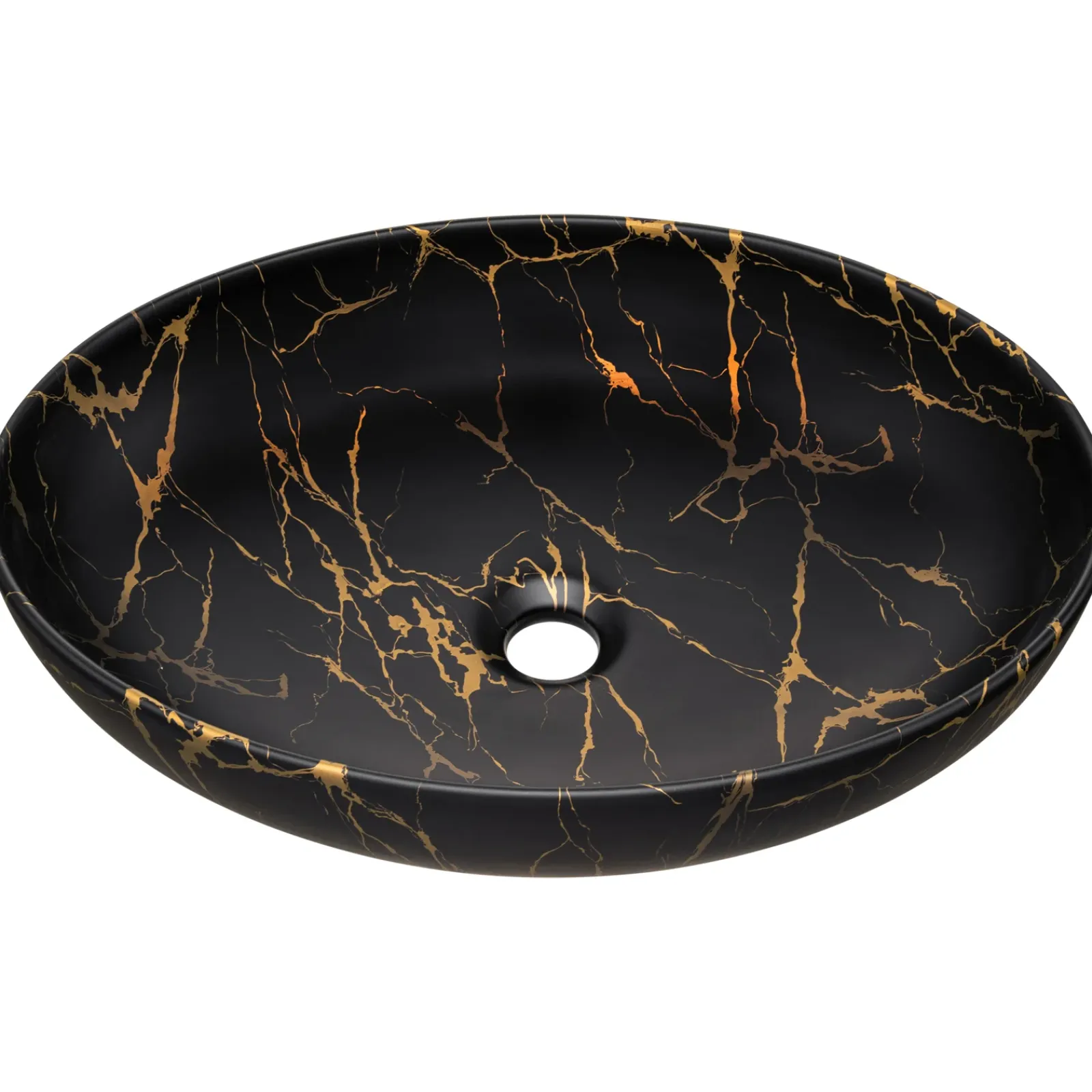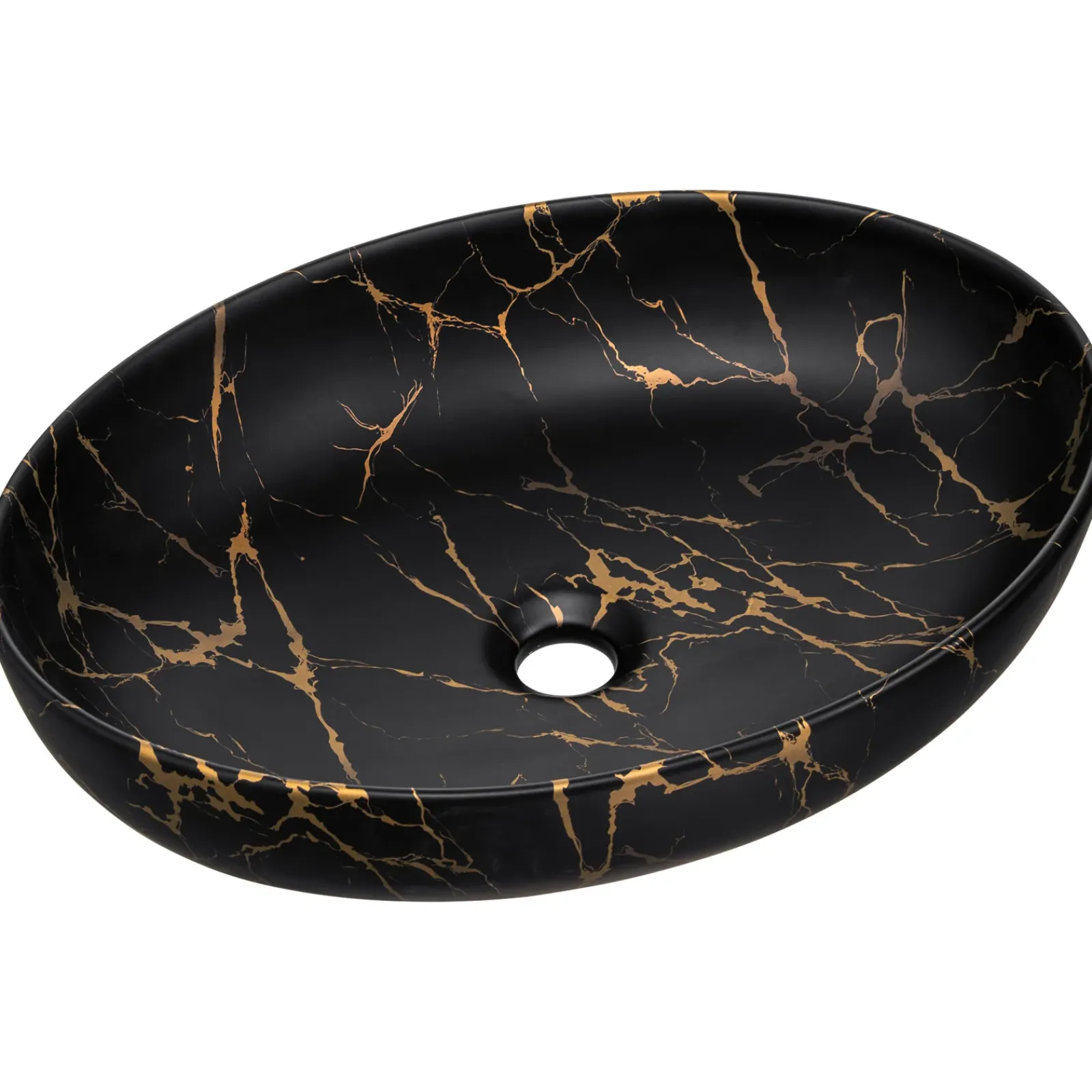 Lavabo bagno da appoggio 52x40cm ceramica nero oro Limpid