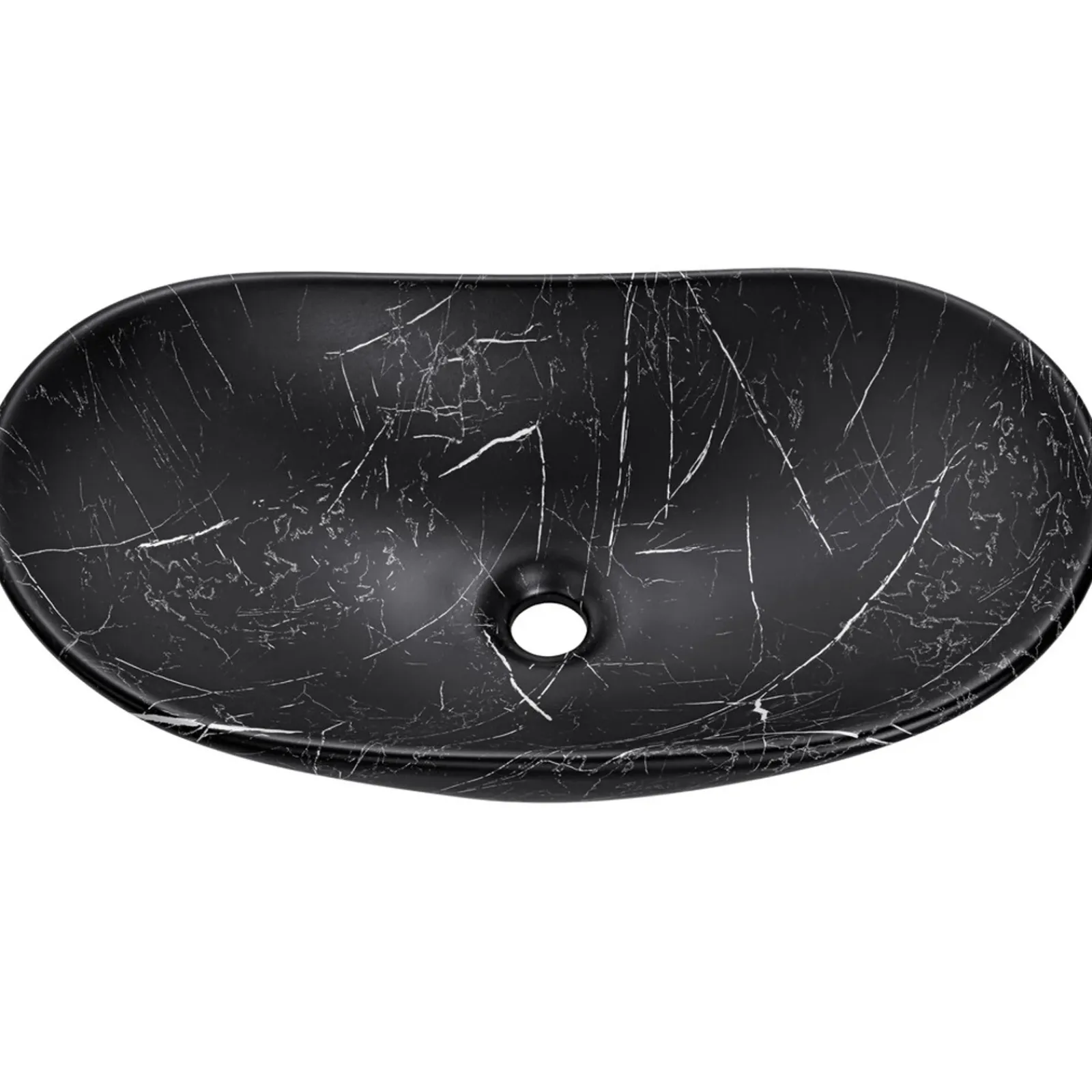 Lavabo bagno da appoggio 61x36cm ceramica nero oro Spuky