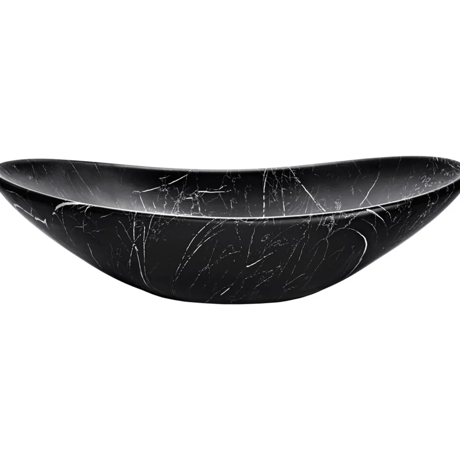 L’effetto marmorizzato gioca con venature su fondo scuro, creando un contrasto scenografico che cattura lo sguardo. Ogni lavello è un pezzo unico, capace di trasformare anche il bagno più essenziale in uno spazio ricercato e distintivo.