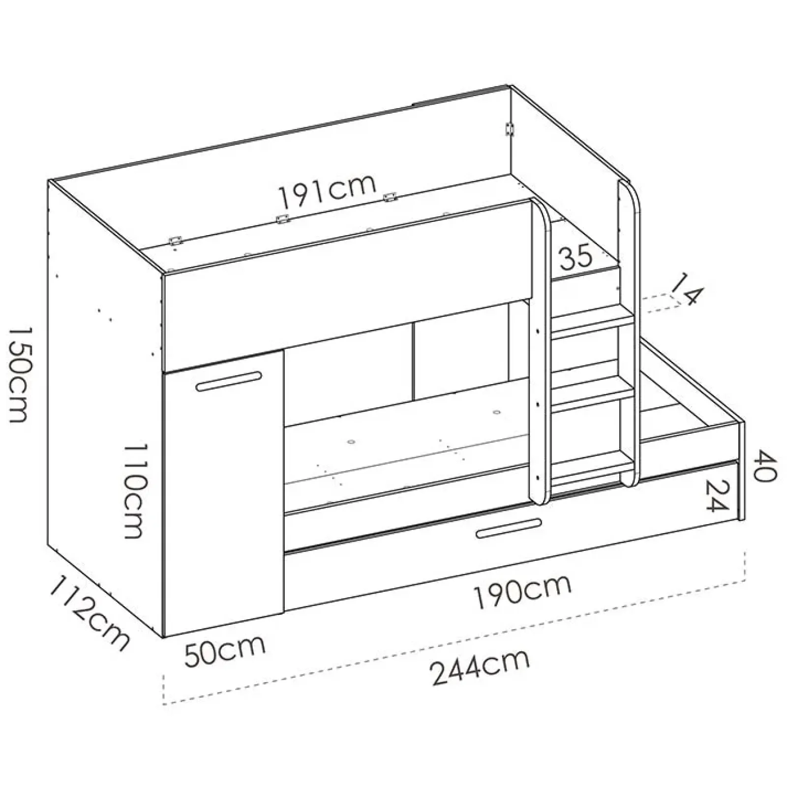 Letto a castello con armadio 244x126cm bianco grafite 3 letti Damian