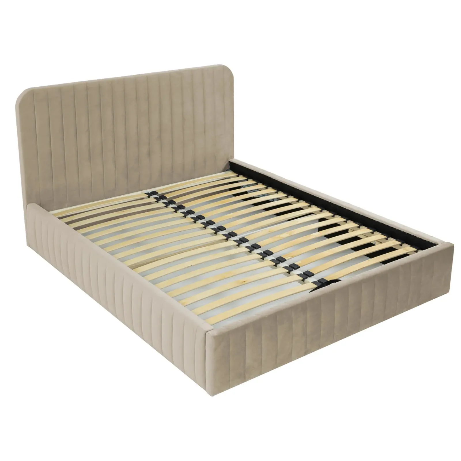 Letto contenitore alla francese 140×200 imbottito velluto beige Poffi