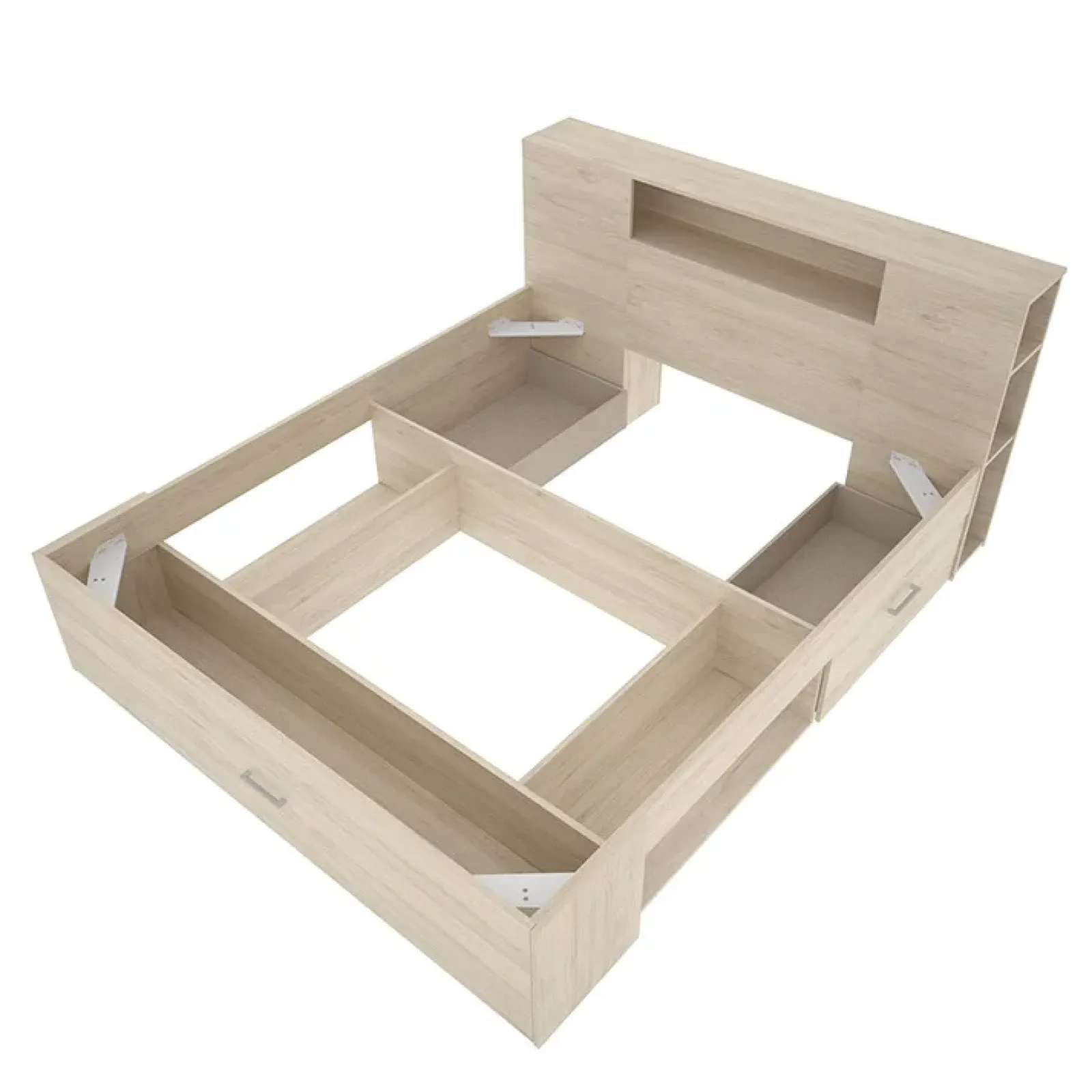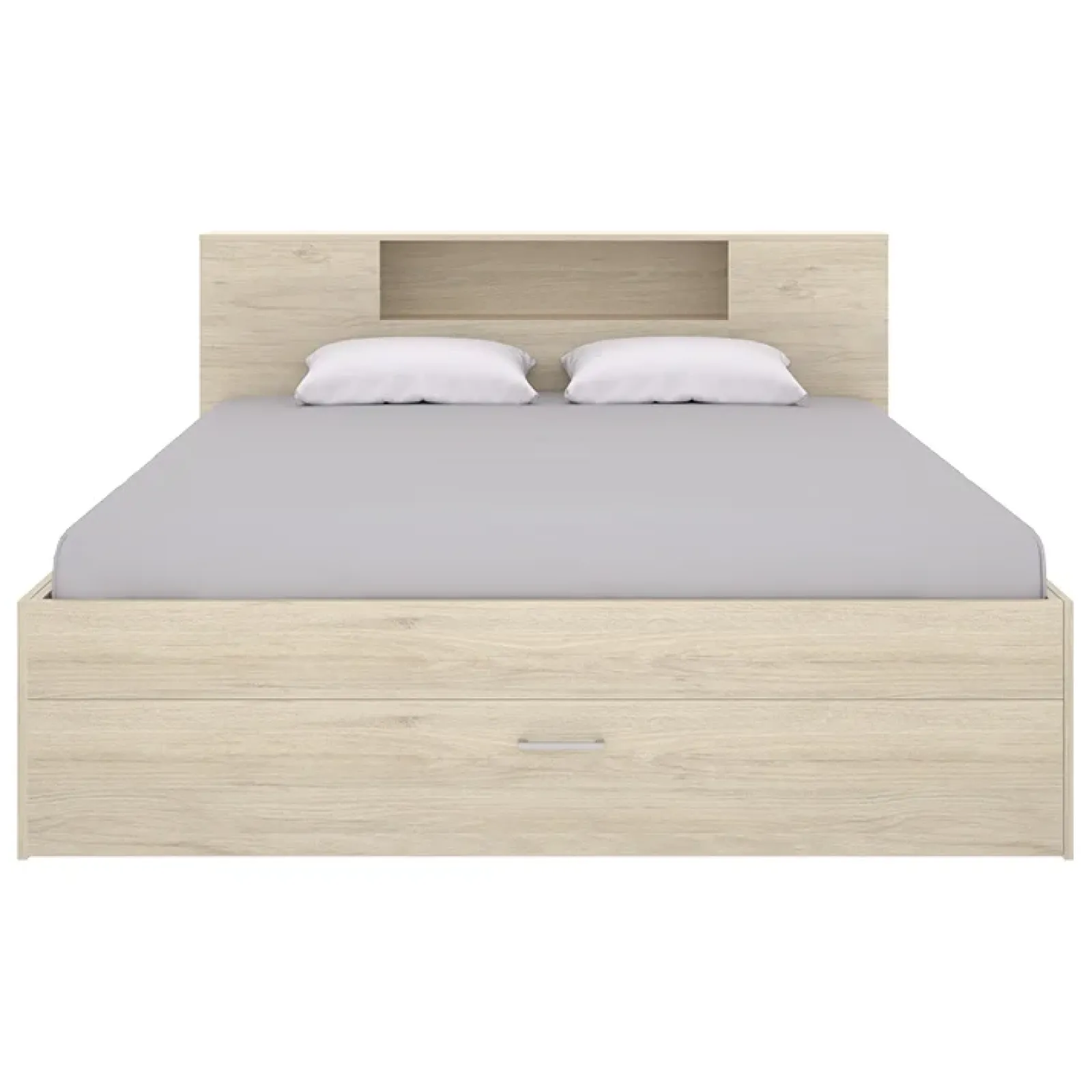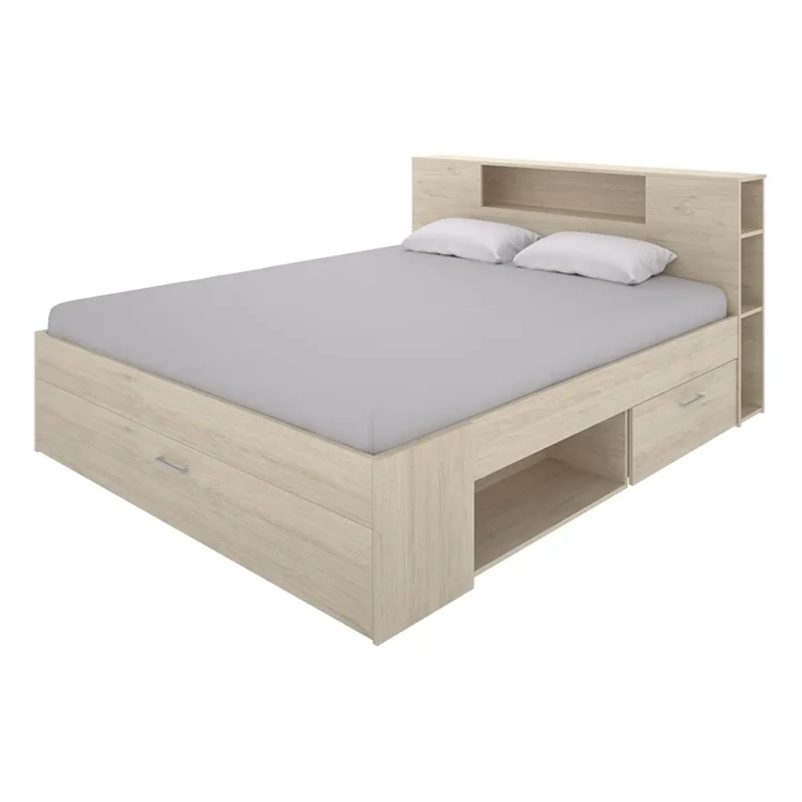 Letto matrimoniale 160x200cm con cassettoni e libreria rovere naturale Nolito