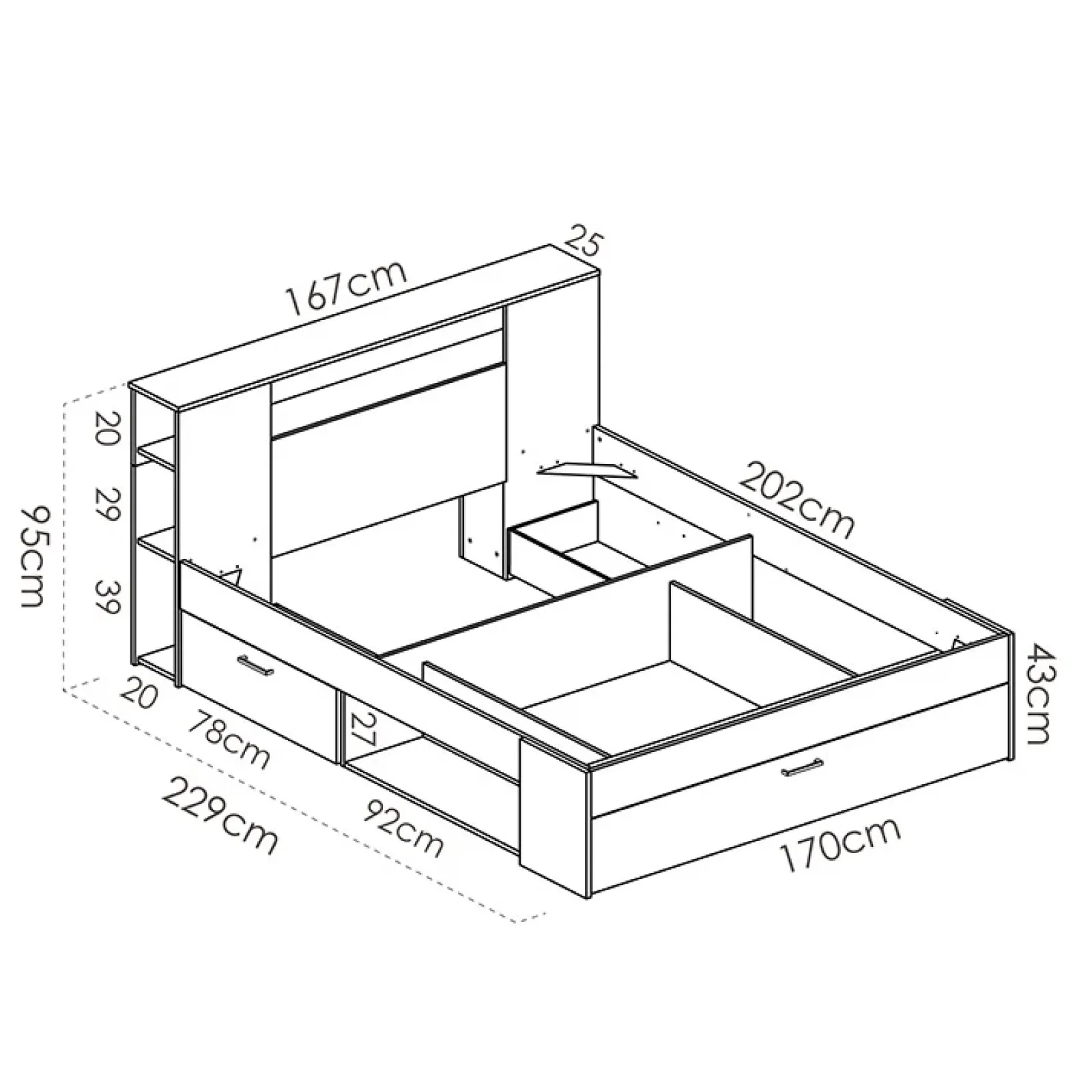 - dimensioni letto: L.170 x P.229 x H.95 cm